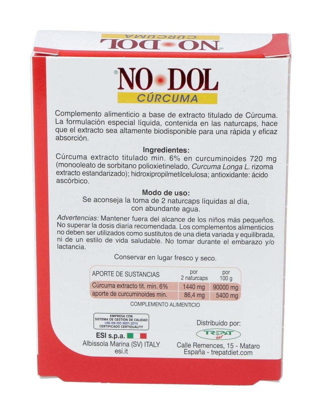 Cúrcuma extracto tit min 6% aporte de curcuminoides....1440 mg (86,4mg)