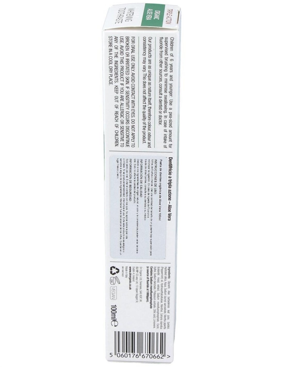 Pasta De Dientes Aloe Vera Organico 100Ml. de Dr. Organic