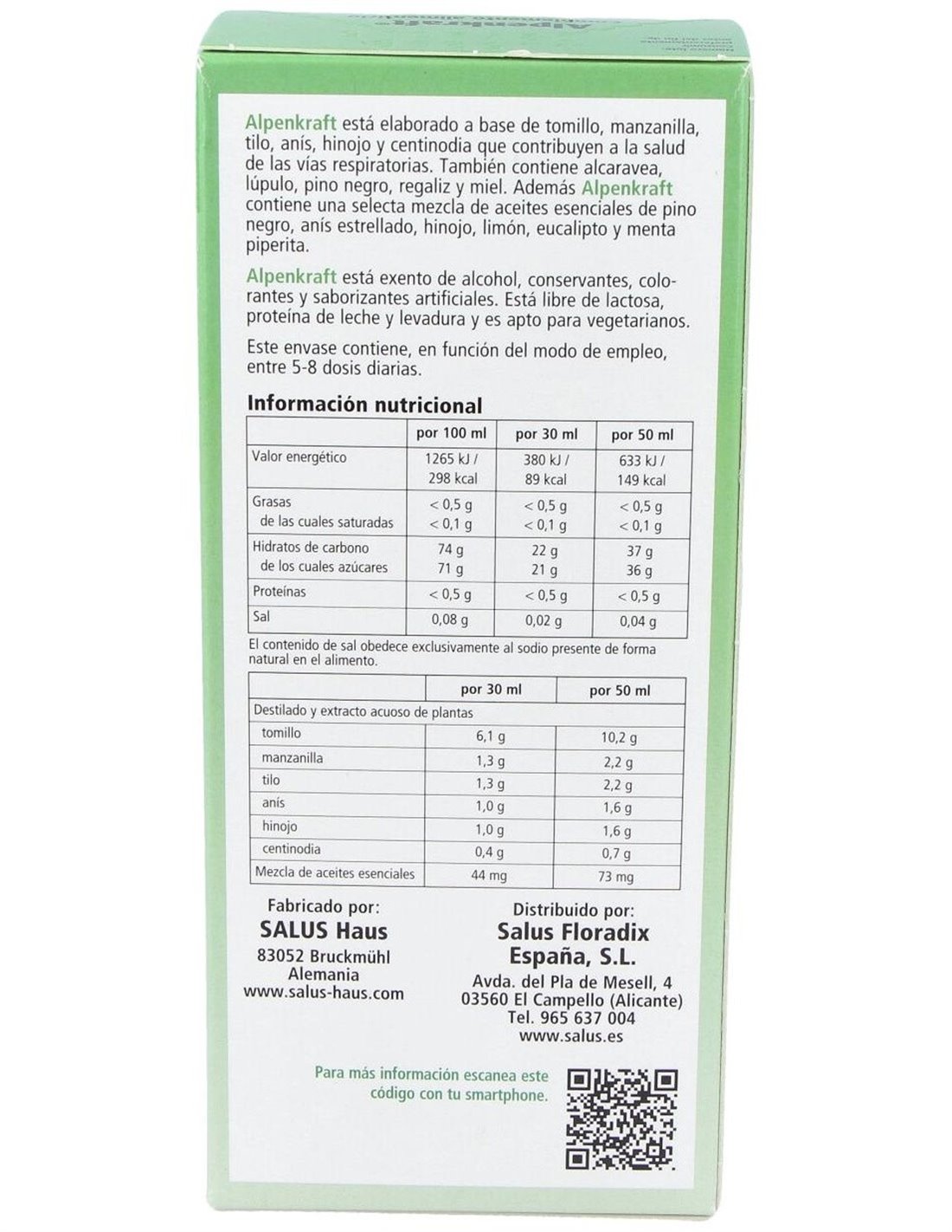 Cómo Tomar Alpenkraft Adultos y niños mayores de 6 años: Tomar 10 ml de 3 a 5 veces al día. Se recomienda que antes de tragar el líquido se deje desleír en la boca.Alpenkraft JarabeLa marca Salus presenta el jarabe Alpenkraft en un frasco de 250 ml, pero también ponemos a tu alcance este remedio natural en otros formatos: