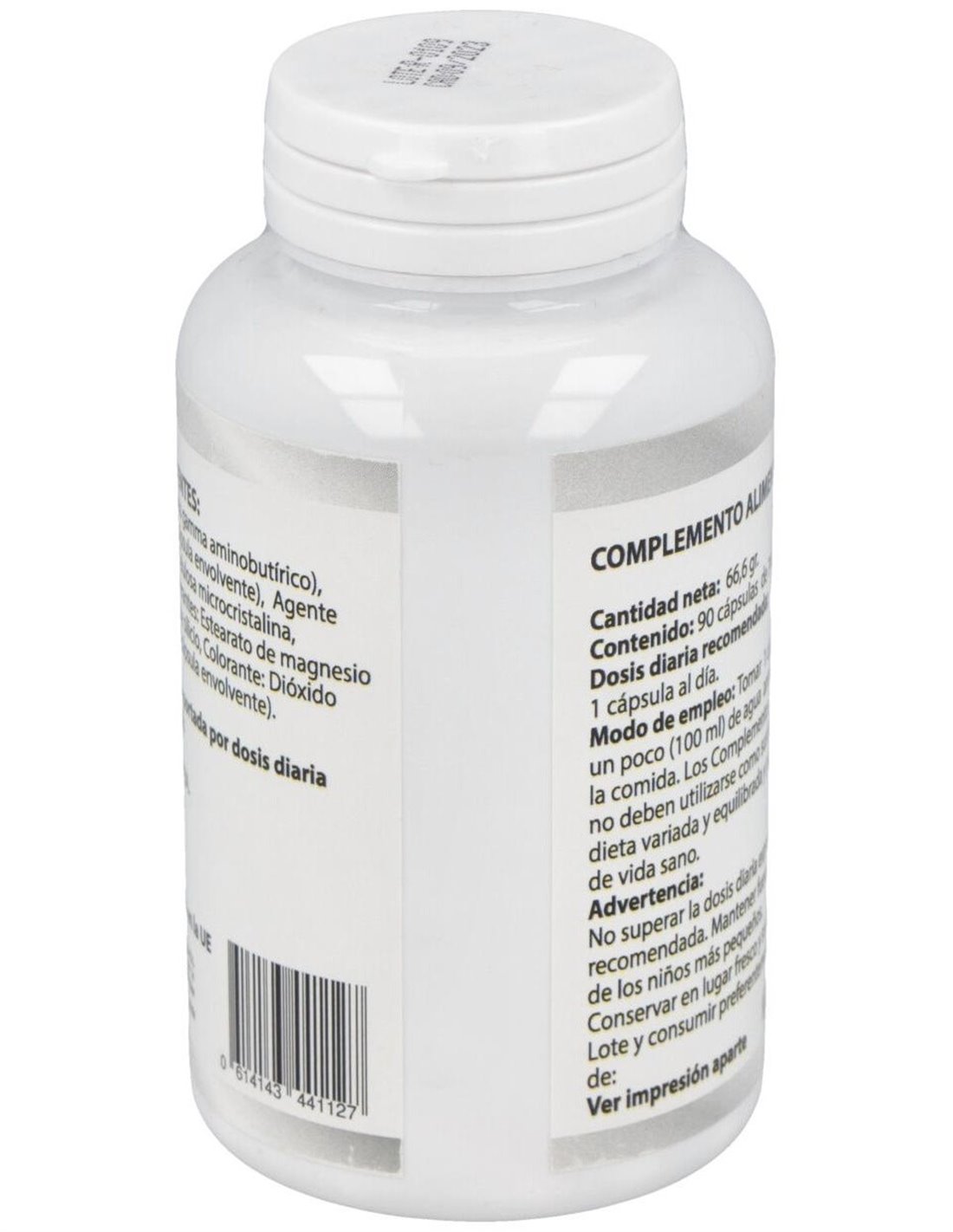 Gaba de Besibz que atua absorvendo o excesso de adrenalina e outros subprodutos tóxicos associados ao excesso de estresse, induzindo um profundo estado de relaxamento e bem-estar. Indicado em estados de ansiedade, insônia, nervosismo, estresse, falta de foco ou concentração, ataques de pânico ou ansiedade. Composição ativa por cápsula: 550 mg de GABA (ácido gama aminobutírico). Ingredientes: GABA (ácido gama aminobutírico), Gelatina (cápsula envolvente), Agente de volume: Celulose microcristalina, Antiaglomerantes: Estearato de magnésio e Dióxido de silício, Corante: Dióxido de titânio (invólucro da cápsula). Conselhos de utilização: Tomar 1 cápsula por dia com um pouco de água antes das refeições. Apresentação: Embalagem de 90 cápsulas.