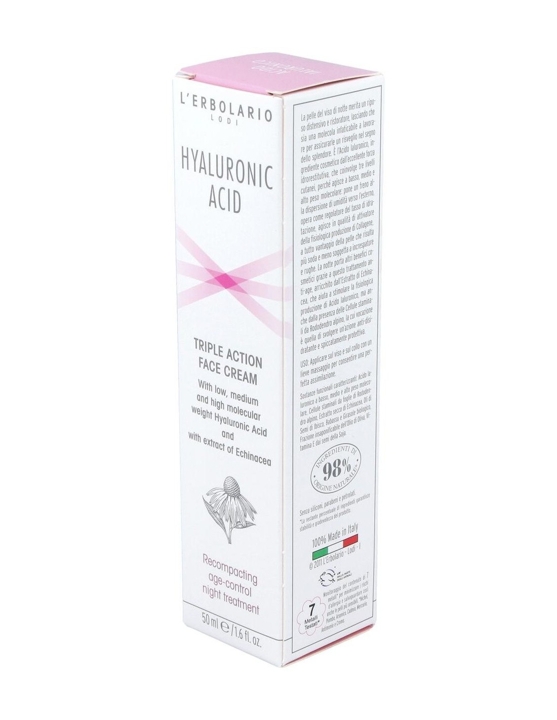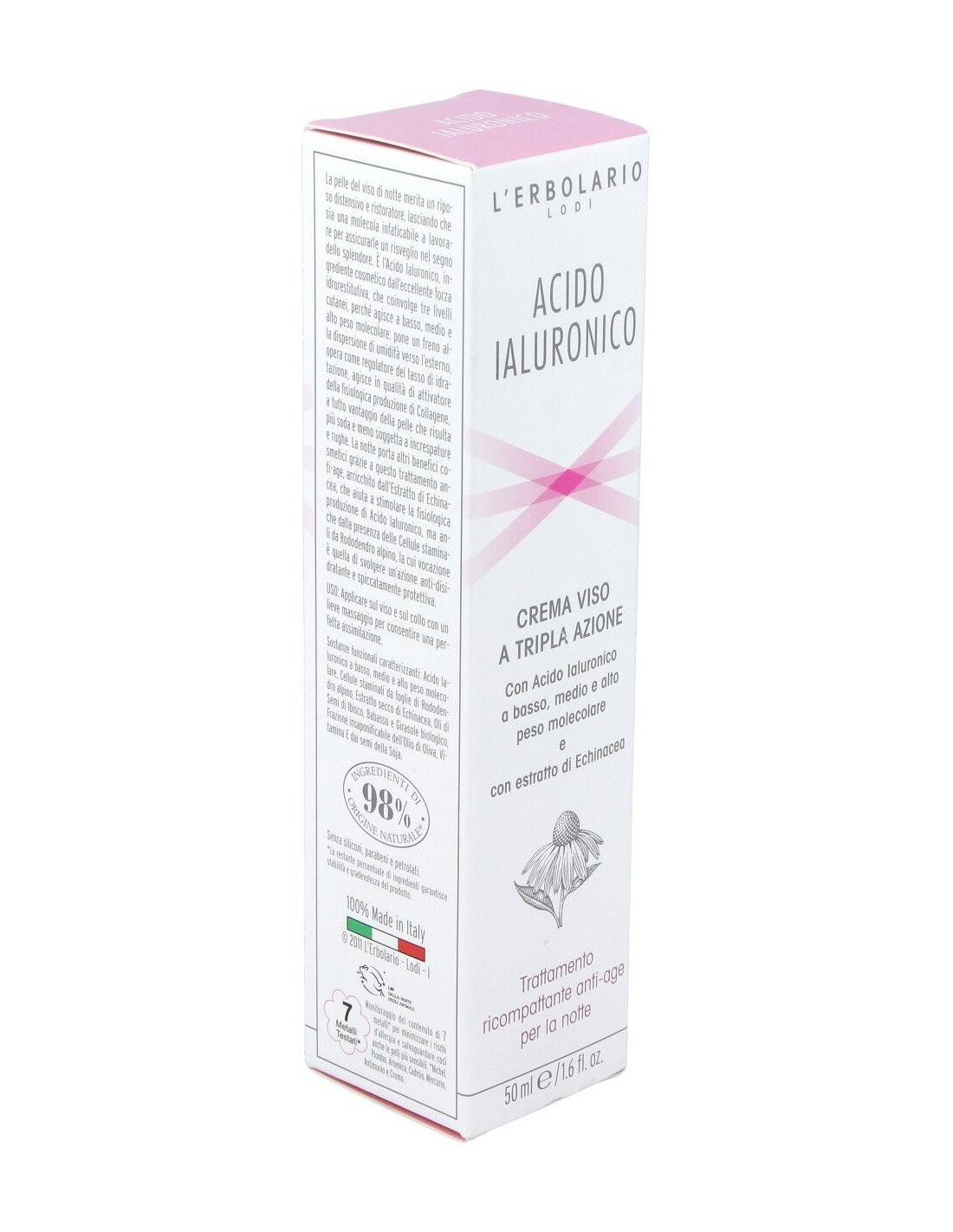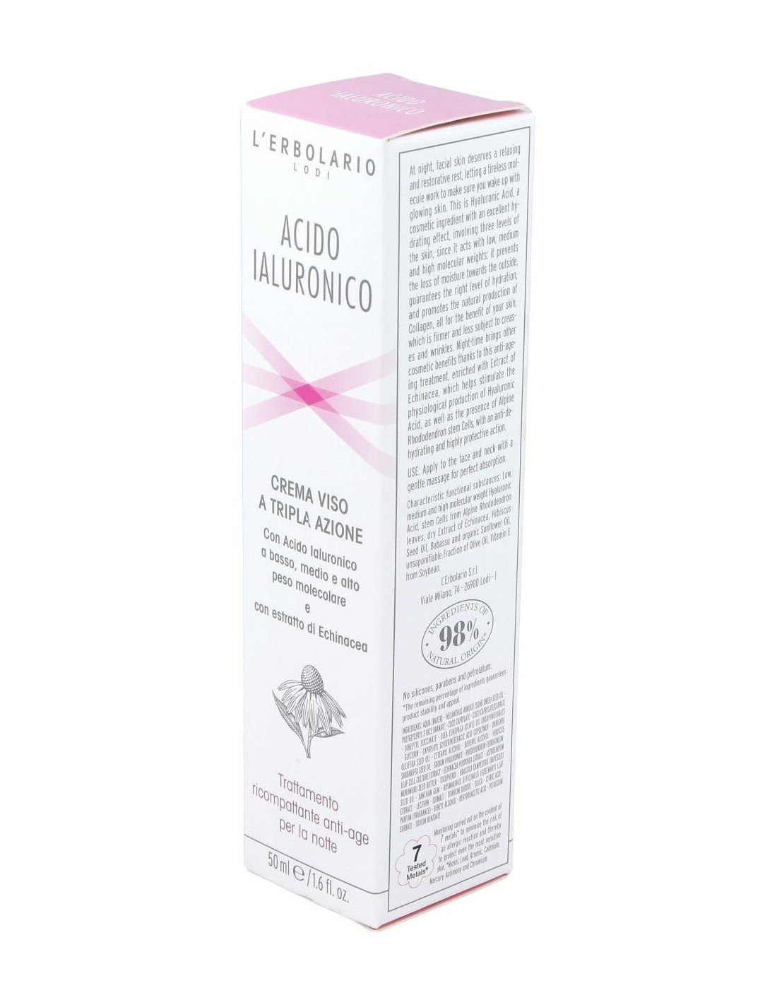 Ácido hialurônico de baixo, médio e alto peso molecular, células-tronco de folhas de rododendro alpino, extrato seco de equinácea, óleo de semente de hibisco, óleo de babaçu, óleo de girassol orgânico, fração insaponificável de azeite, vitamina E de soja. insaponificáveis de óleo europaea (azeitona), glicerina, copolímero de capriloil glicerina / ácido sebácico, óleo de semente de Orbignya oleifera, álcool cetearílico, álcool behenílico, óleo de semente de Hibiscus sabdariffa, hialuronato de sódio, extrato de cultura de células de folhas de Rhododendron ferrugineum, extrato de Echinacea purpurea, manteiga de semente de Astrocaryum murumuru, tocoferol, Brassica campestris Óleo de semente (colza), />Distribuir no rosto e pescoço após a limpeza noturna. Uma leve massagem é suficiente para uma perfeita assimilação.
