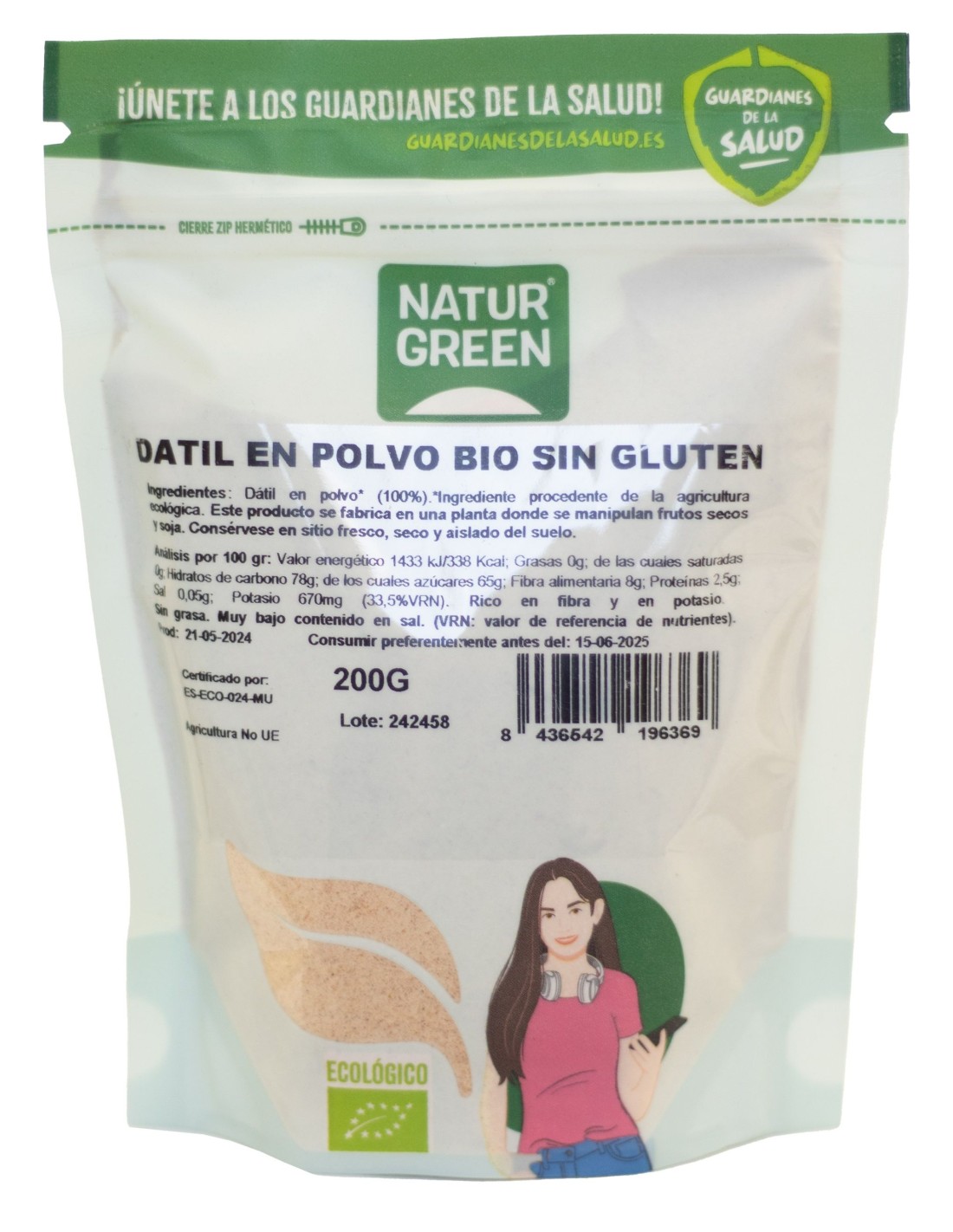 Ingredientes:Dátil* (100%). (*) Ingredientes procedentes de la agricultura ecológica.Valor nutricional por 100 gramos: