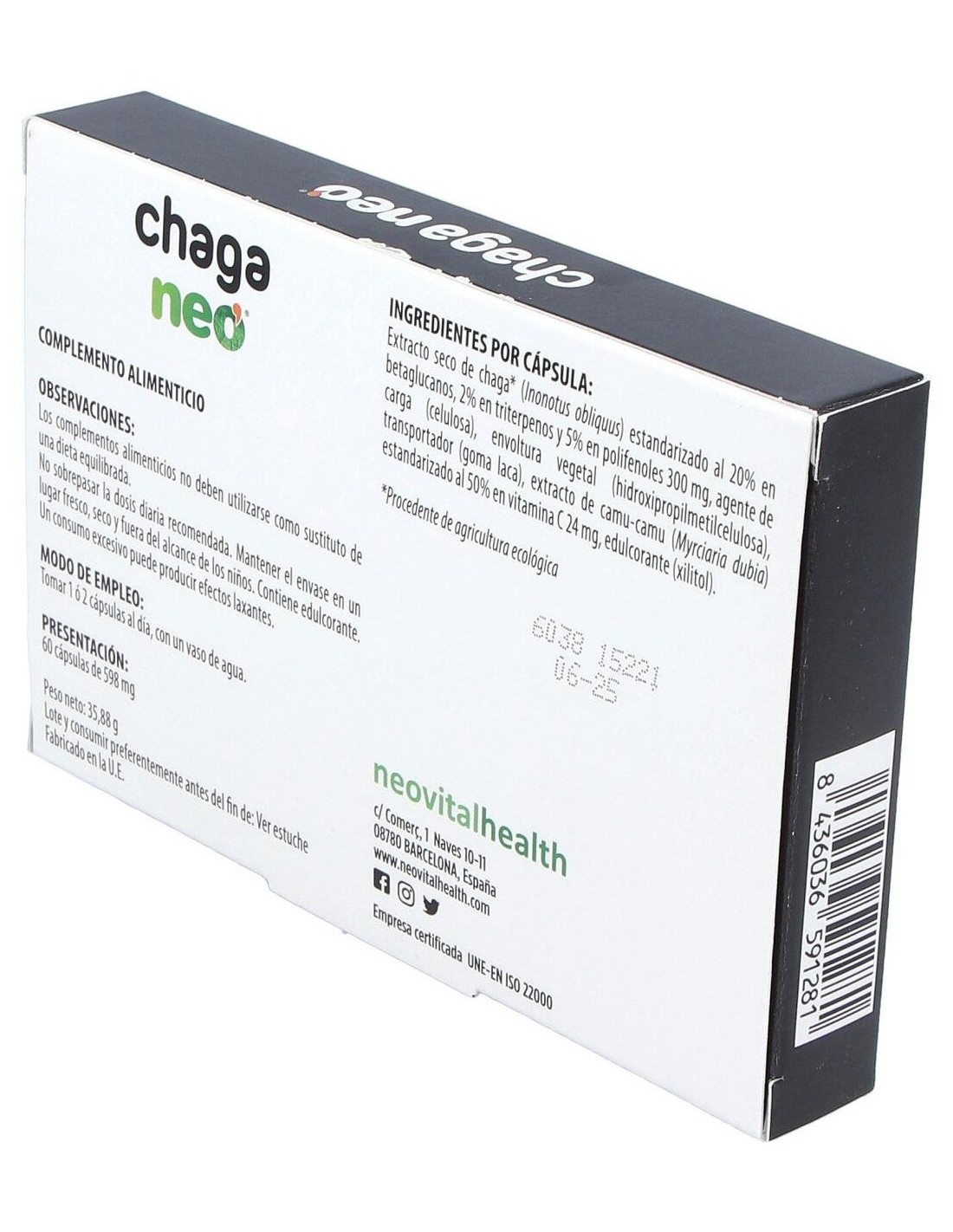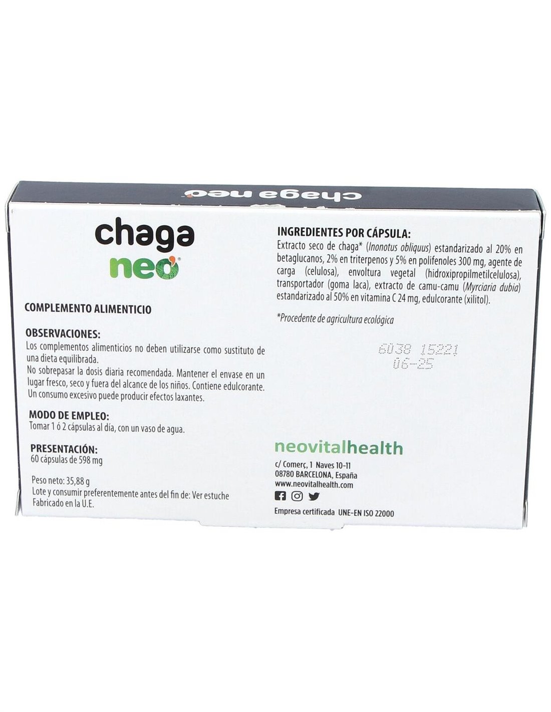Extracto seco de chaga (Inonotus obliquus) estandarizado al 20% en betaglucanos, 2% en triterpenos y 5% en polifenoles: 300 mg
