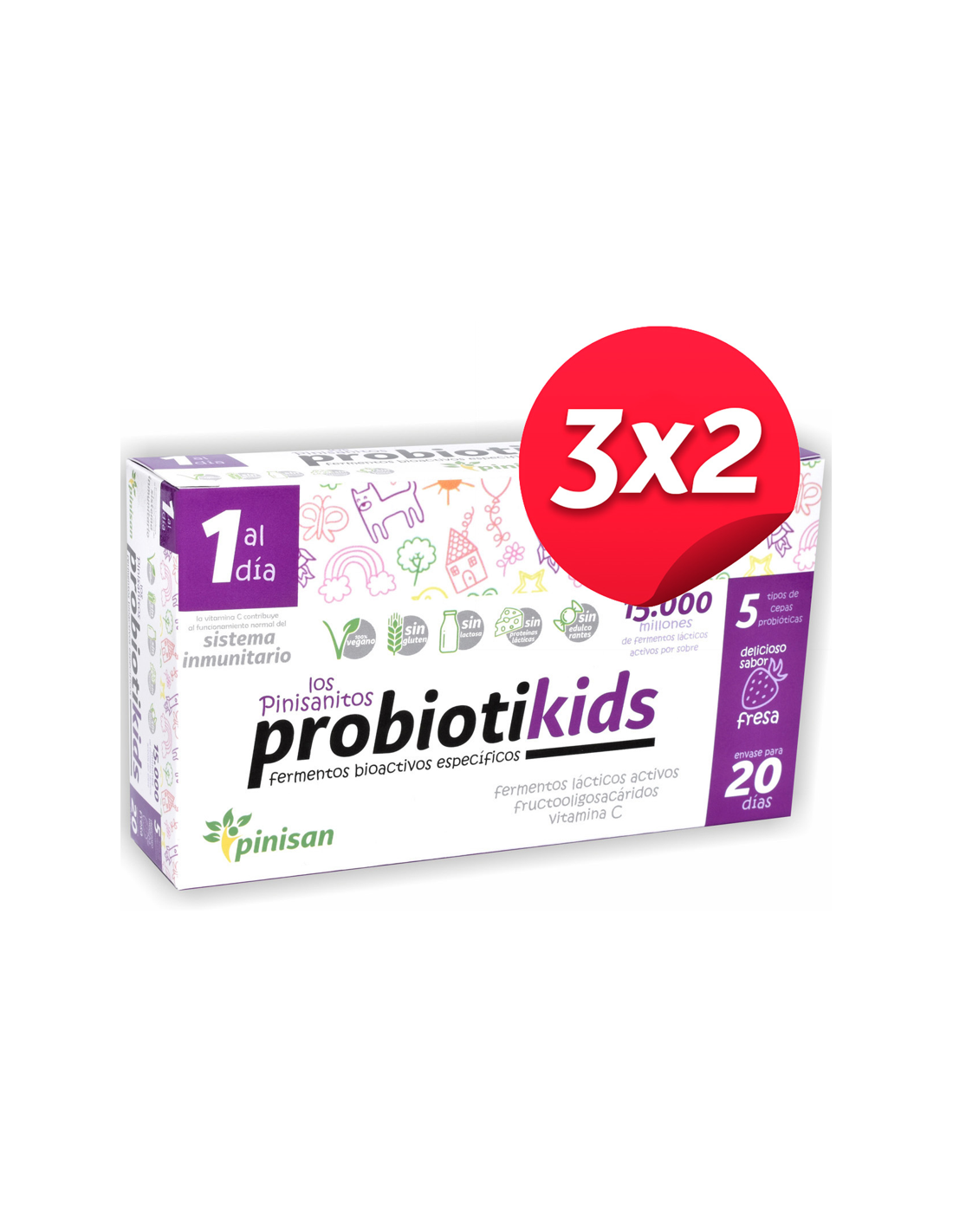 Pack 3x2 Probiotikids, 20 Sobres. de Pinisan