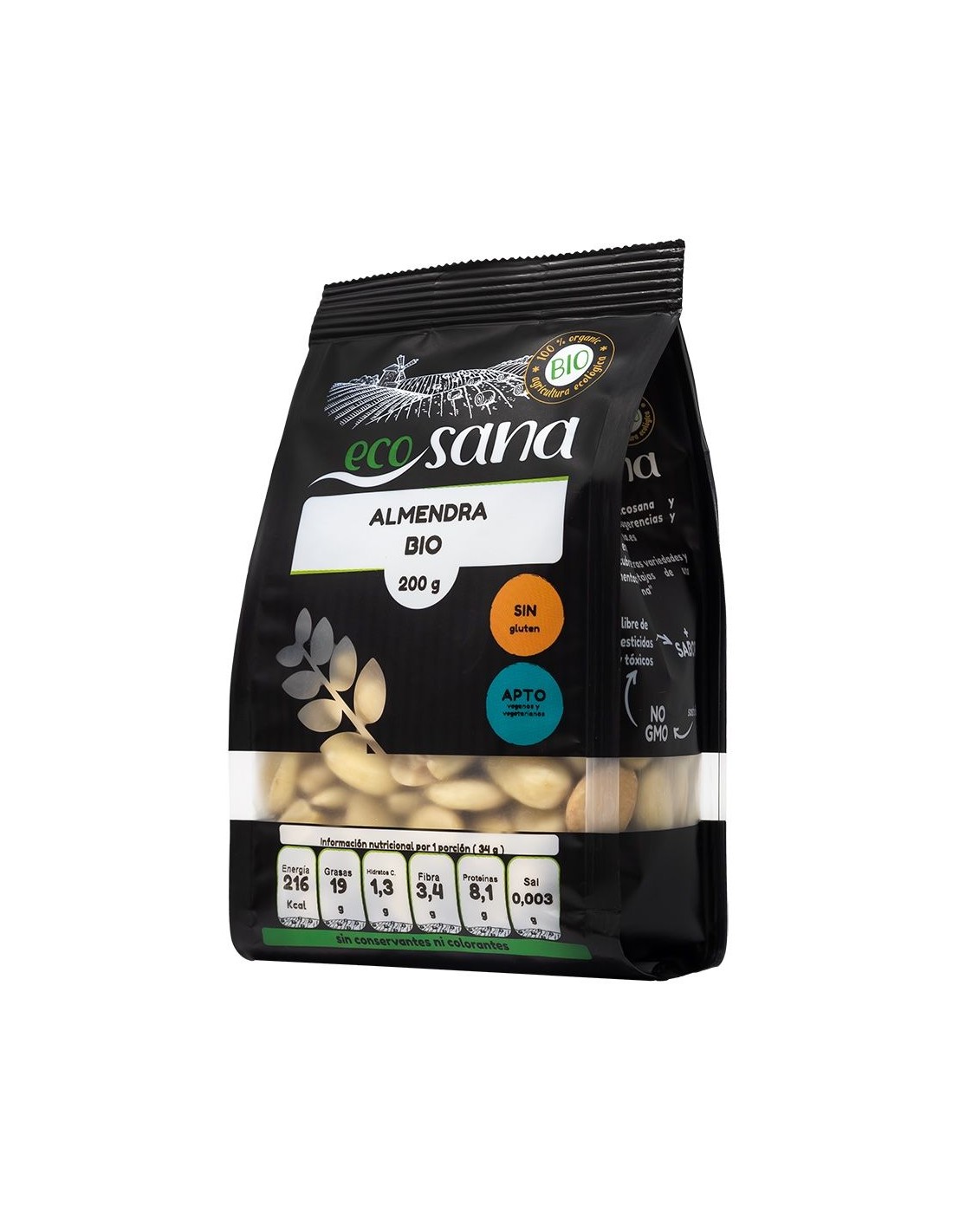 Las Almendras Blancas Bio de Ecosana se obtienen a partir de cultivos ecológicos, consiguiendo un producto de máxima calidad y a la vez respetuoso con el medio ambiente.Este fruto seco aporta gran cantidad de energía y grasas saludables. Tiene un alto contenido de fibra, por lo que ayuda a regular el tránsito intestinal. También destaca su contenido en Calcio y en Vitamina E (antioxidante).Ingredientes:Almendra pelada*. (*) Procedente de agricultura ecológica.Valor nutricional por 100 gramos: