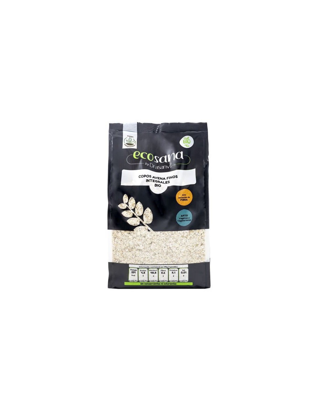 Copos de Avena Finos Integrales Bio de Ecosana proporciona mucha energía, por lo que es muy recomendado para deportistas y estudiantes. Contiene hidratos de carbono complejos, que son asimilados por el cuerpo lentamente, proporcionando una sensación de saciedad y además tienen un bajo contenido de grasas saturadas.Ingredientes:Copos de avena finos integrales*. (*) Procedente de agricultura ecológica.Valor nutricional por 100 gramos: