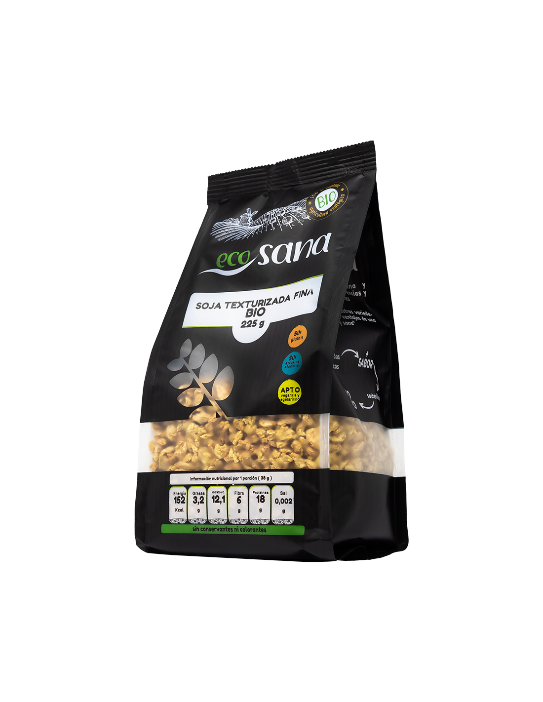 Ingredientes:Proteína de soja texturizada fina*. (*) Procedente de agricultura ecológica.Valor nutricional por 100 gramos:
