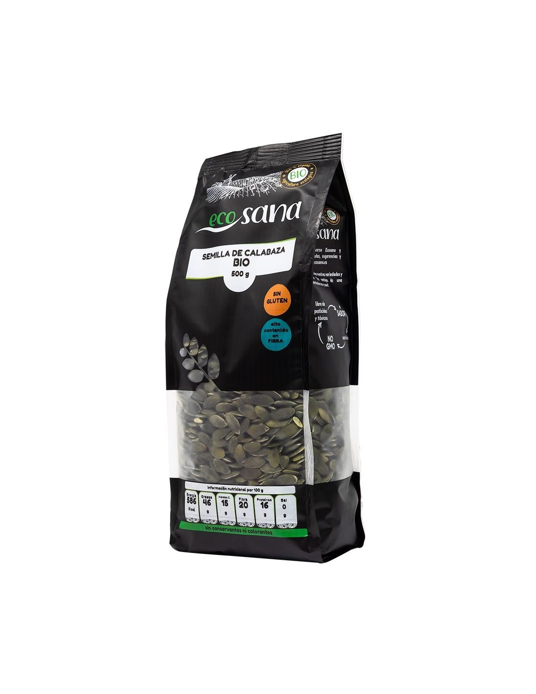 Ingredientes:Semillas de calabaza*. (*) Procedente de agricultura ecológica.Valor nutricional por 100 gramos: