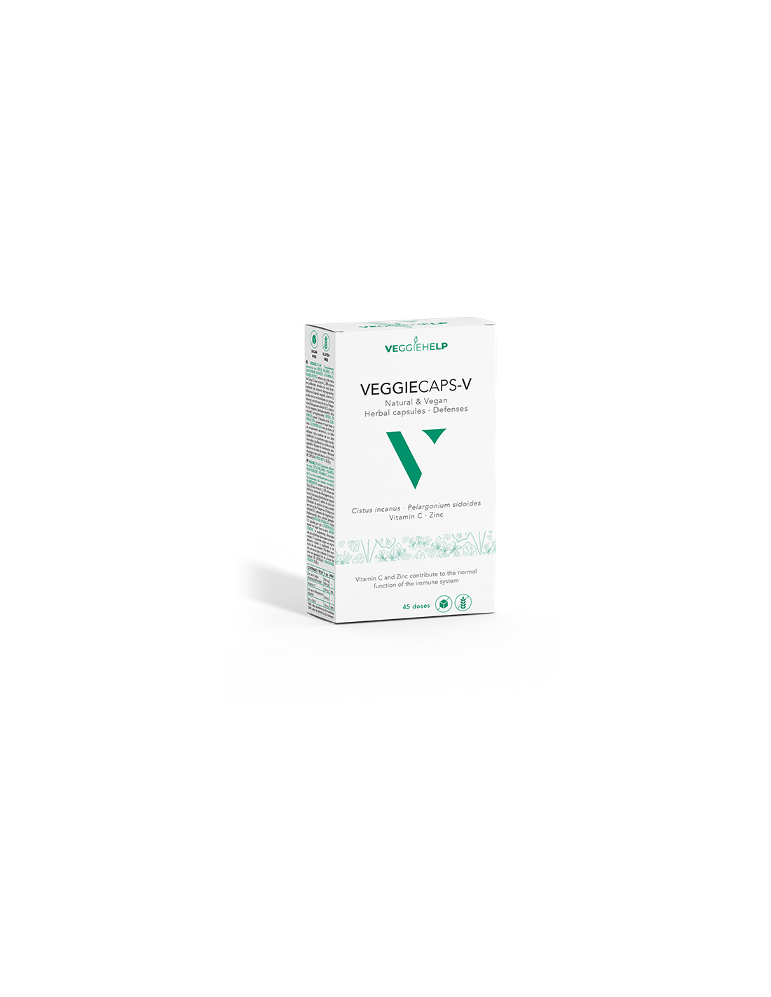 Suplemento alimenticio vegano en cápsulas, formulado con extractos de Cistus incanus, Pelargonium sidoides, vitamina C y zinc, que contribuyen a la normal función del sistema inmune.