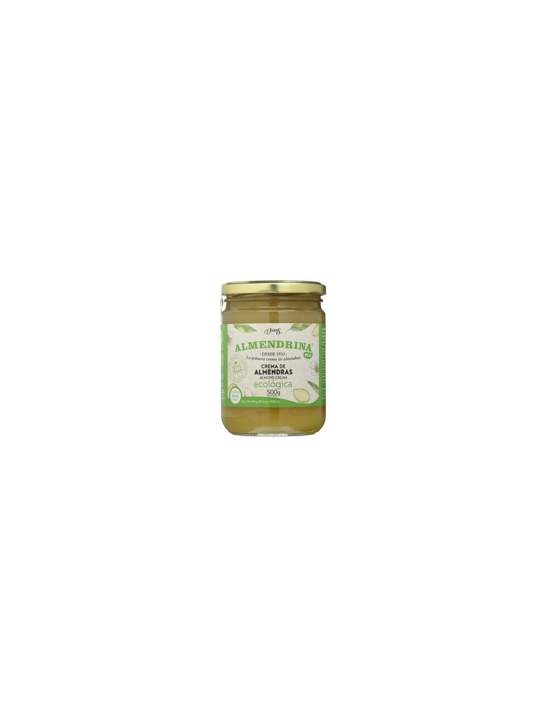 ALMENDRINALa crema de almendras Almendrina no tiene ningún aditivo, sólo agua, maltosa ecológica y almendras ecológicas. Cuenta con la selección experta de las mejores almendras procedentes de cultivo ecológico (con certificado CCPAE), y el control de todo el proceso de producción. 100% vegetal y apta para veganos, recomendada para intolerantes a la leche de origen animal.