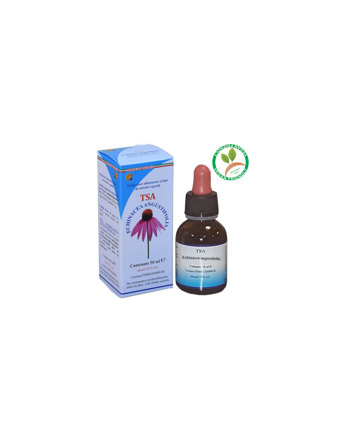 La TSA Echinácea Angustifolia se obtiene remojando las sumidades, recién recogidas en su tiempo balsámico (Julio-agosto para toda la planta con flores, en octubre por el rizoma), en una solución que está compuesta de alcohol espagírico y agua, siguiendo el método espagírico-alquímico de Solanimus. La planta tiene propiedades bacteriostáticas y virusstáticas contra varias bacterias, virus (virus del herpes, influenza A y B, y otros) y tricomonas.Síntesis psíquica: Estimula el verdadero "Yo" interior, lo despierta. Además a fortalecer el sistema inmunológico (útil para muchas enfermedades), también fortalece el psíquico, sobre todo cuando la persona ha conocido a fuerzas chocantes y destructivas. Ayuda a recuperar la verdadera identidad del ego y de la dignidad de la persona, en relación con el entorno y con las personas. Ayuda cuando hay entumecimiento, llevando así la presencia de espíritu.Ingredientes por 120 gotas:Solución hidroalcohólica Espagirico-Alquímica con una relación de extracción de 1:5 (R.E. 1/5) de Equinácea (Echinacea angustifolia DC.) sumidades 3,3 g.Modo de empleo:Tomar 25-40 gotas en un poco de agua, 3 veces al día.Presentación:Envase de 50 ml.