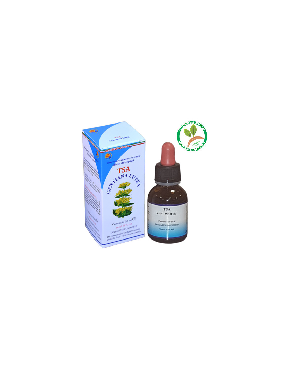 Gentiana Lutea se obtiene remojando las raíces, recién recogidas en su tiempo balsámico (Marzo-Abril o Septiembre-Octubre), a partir del segundo año de vida, en una solución hidro-alcohólica, donde el alcohol es espagírico, y siguiendo el método espagírico-alquímico de Solanimus. La planta contiene principios amargos (genziopicrina, genziomarina, genziina, amurogentina), un alcaloide (genzianina), inulina, pectina, ácidos fenólicos y otras sustancias. La genciana tiene la capacidad de estimular el receptor del gusto amargo presente en la lengua (los receptores son cuatro, uno por el sabor salado, uno para el amargo, uno para el dulce y el último para el sabor amargo) causando un aumento de la secreción salivar y gástrica (esta excitación indirecta de la mucosa gástrica le permite de no tener ningún carácter irritativo), por lo tanto, por esta razón tiene la capacidad de estimular el apetito y mejorar la función general del sistema digestivo.La planta se utiliza de buen grado como tónico digestivo en las personas mayores. La Genciana puede estar asociada con preparaciones que contienen hierro, entonces se utiliza para combatir la anemia. Facilitando la función digestiva mejora la absorción de muchos nutrientes, incluyendo el hierro y la vitamina B12, por esto se recomienda también en las reglas abundante. El alcaloide Genzianina actúa sobre el sistema de la termorregulación, así tiene un efecto antipirético, pero, además, estimula la producción de linfocitos, mejorando así la eficiencia del sistema inmunológico.Ingredientes por 120 gotas:Solución hidroalcohólica Espagírico-Alquímica con una relación de extracción de 1:5 (R.E. 1/5) de Genciana amarilla (Gentiana lutea L.) raíz 3,3 g.Modo de empleo:Tomar 25-40 gotas en un poco de agua, 30 minutos antes de las comidas principales.Presentación:Envase de 50 ml.