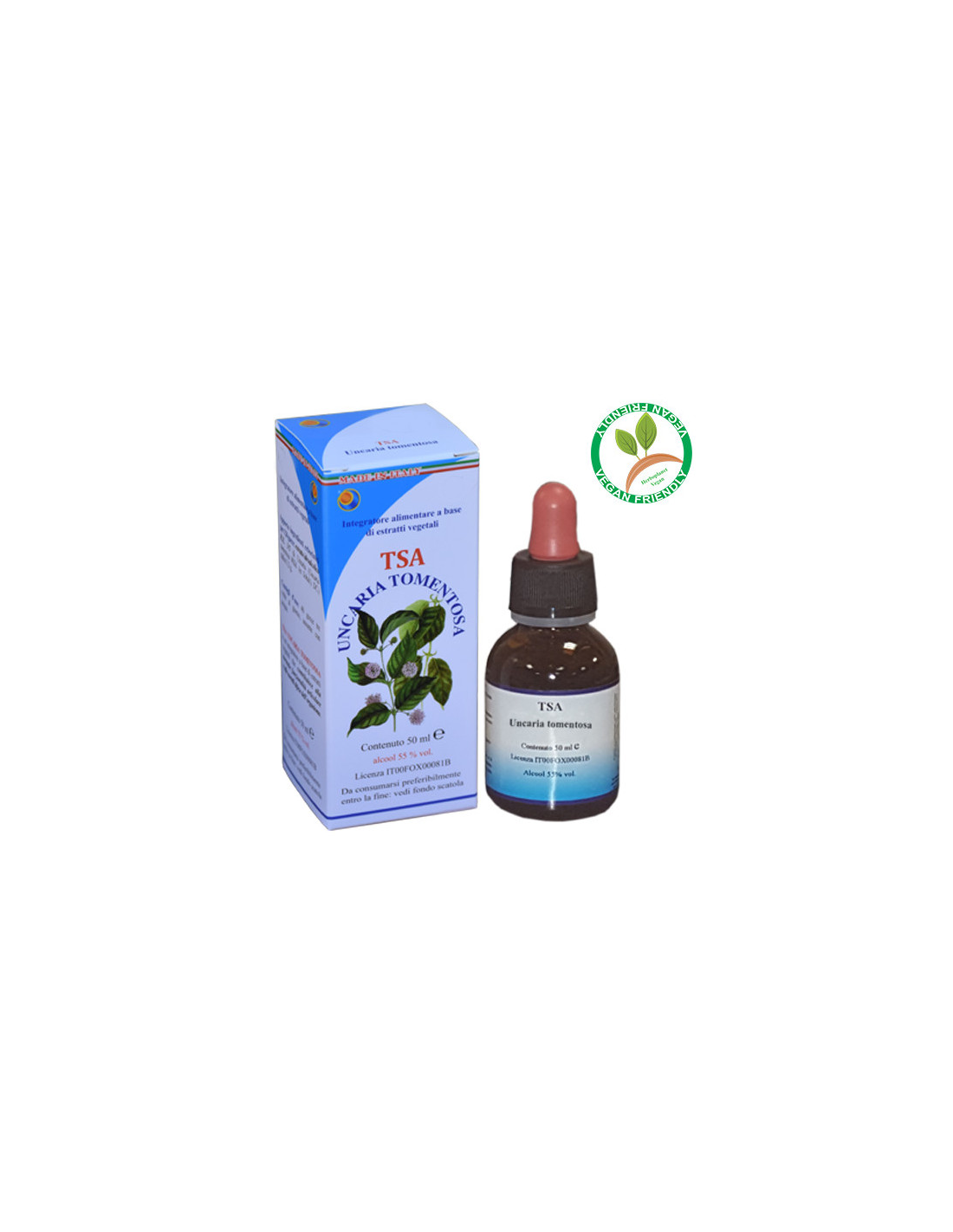 TSA Uncaria Tomentosa se obtiene remojando la parte interna de la corteza de las raíces y la base del fuste de la planta adulta, recién recogidas en su tiempo en balsámico (antes de la floración), en una solución que está compuesta de alcohol espagírico y agua, siguiendo el método espagírico-alquímico de Solanimus.La planta contiene una fracción alcaloidea, una fracción de polifenolica, glucósidos del ácido chinovico y otras sustancias. La Uña de Gato tiene un amplio espectro de actividad y es eficaz contra una amplia gama de problemas inflamatorios, de las artritis a los reumatismos. Desde siempre sido utilizada por los curanderos amazónicos para la restauración de las defensas fisiológica.Ingredientes por 120 gotas:Solución hidroalcohólica Espagírico-Alquímica con una relación de extracción de 1:5 (R.E. 1/5) de Uña de gato (Uncaria tomentosa Willd. (ex Schult.) DC.) raíces y la base del tallo de plantas adulta 3,3 g.Modo de empleo:Tomar 25-40 gotas en un poco de agua, 3 veces al día.Presentación:Envase de 50 ml.