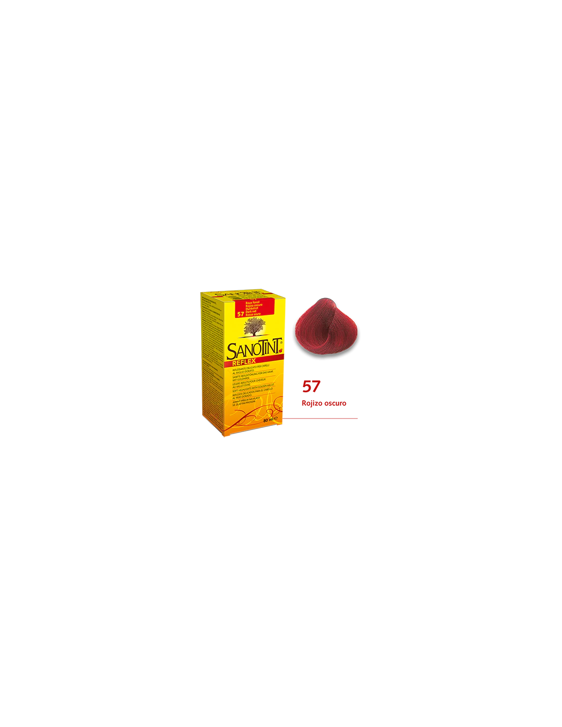Sanotint Reflex es un producto a base de plantas con extractos de manzanilla, quino, hojas de olivo y mijo dorado que interactúan entre sí y dan reflejos brillantes y vivos al cabello creando diferentes tonos desde el negro hasta el rojo intenso cálido. Al no ser un tinte, los pigmentos del reflejo no penetran en el cabello, sino que solo recubren la parte externa del mismo, por lo que el color se elimina gradualmente en 5 a 6 lavados.Sanotint Reflex cubre delicadamente el cabello blanco, pero no de manera permanentemente como un tinte. Sanotint Reflex está listo para usar. No es necesario mezclar los componentes antes de la aplicación.Ingredientes (INCI):Extractos vegetales de camomila, mijo dorado, hoja de olivo (aguamarina, metoxiisopropanol, cocamidopropil betaína, hidroxietilcelulosa, parfum, laurdimonio, hidroxipropilo, proteína de trigo hidrolizada, poliquaternium-22, propilenglicol, hidróxido de sodio, extracto de acetato de pantóxido, pantóxido de pantopropileno, extracto de acetato de pantóxido de pantodio, extractor de sodio, extracto de acetato de pacóxido de sodio, extracto de pantoruro de sodio y ácido clorhídrico. Extracto de hoja de Olea europaea, extracto de Cinchona, extracto de Chamomilla recutita, butilparabeno, etilparabeno, propilparabeno, metilparabeno, fenoxietanol, ácido sórbico, caprilil glicol, linalool).Modo de empleo:Seguir atentamente las instrucciones que encontrarás en el interior.Presentación:El envase contiene: