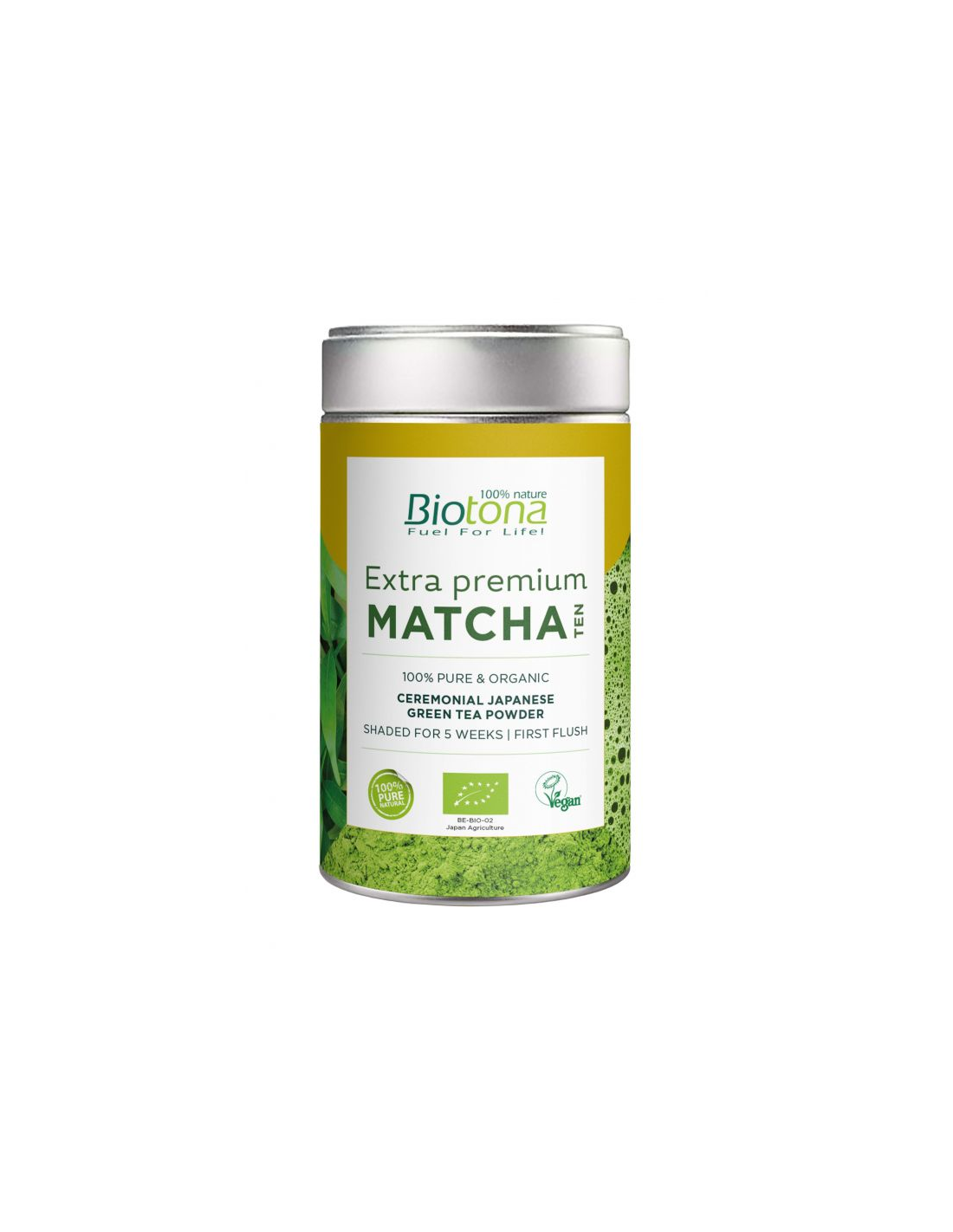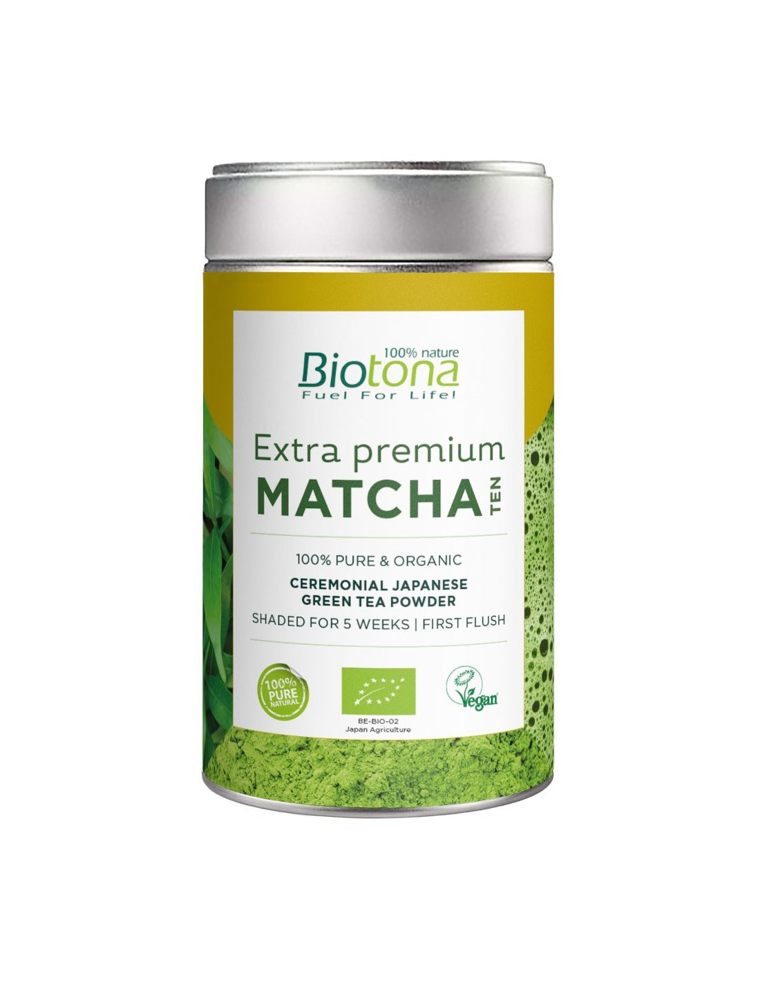 Té Extra Premium Matcha de Biotona es un té verde primaveral de Japón con ricos sabores de frutas y un intenso sabor umami (gracias a su teanina).Se