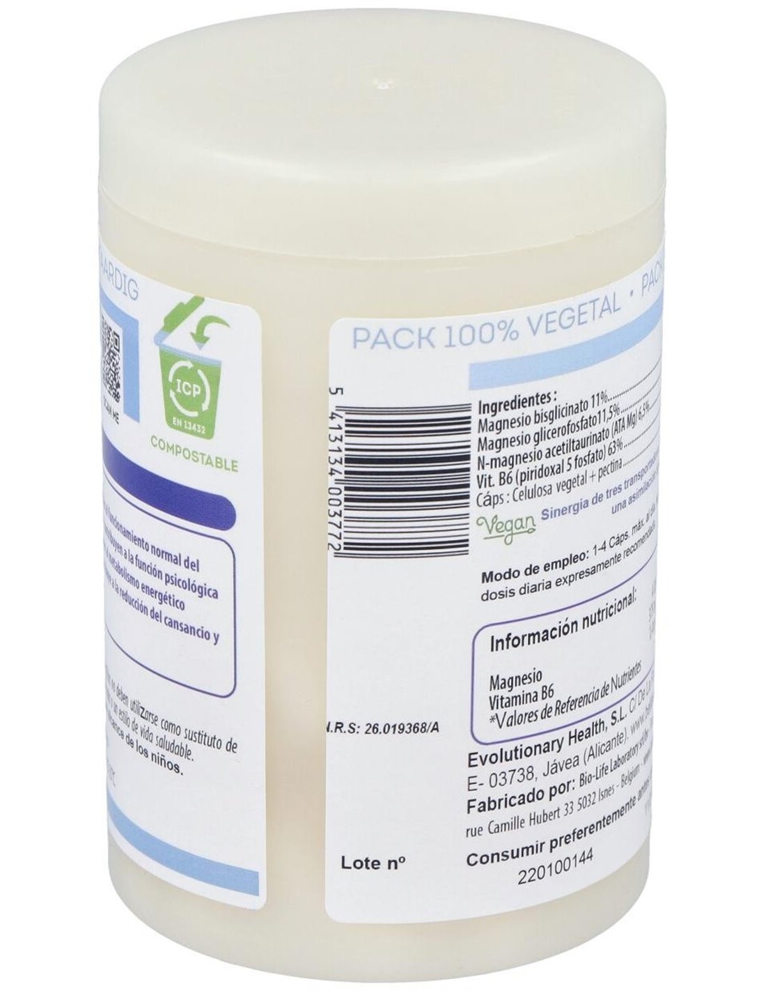 Está compuesto por tres sales de magnesio diferentes, lo que tiene la ventaja de ofrecer al cuerpo tres maneras diferentes de asimilar el magnesio. Además, estas tres sales se ofrecen en cápsulas resistentes a los ácidos. Envase ecológico.