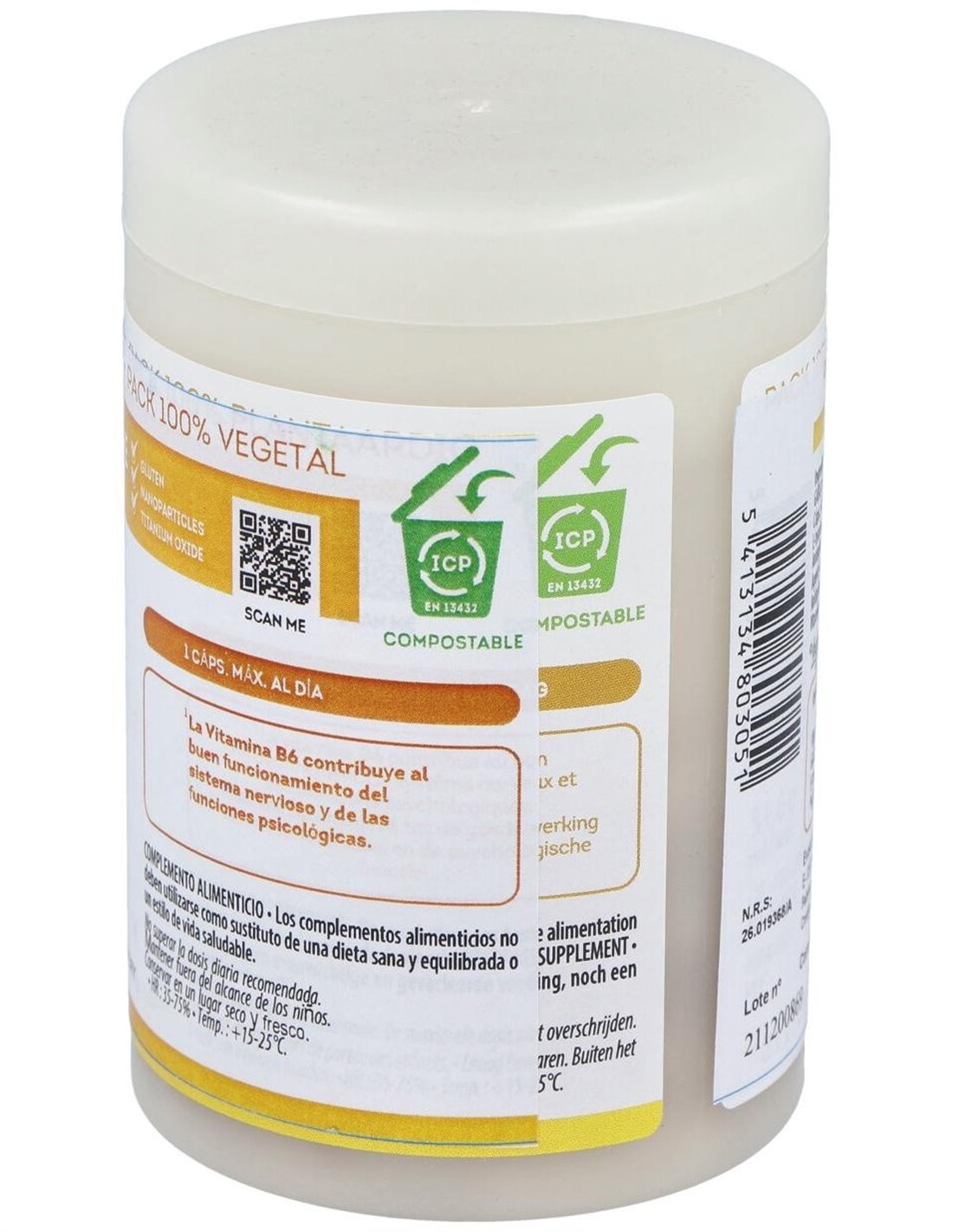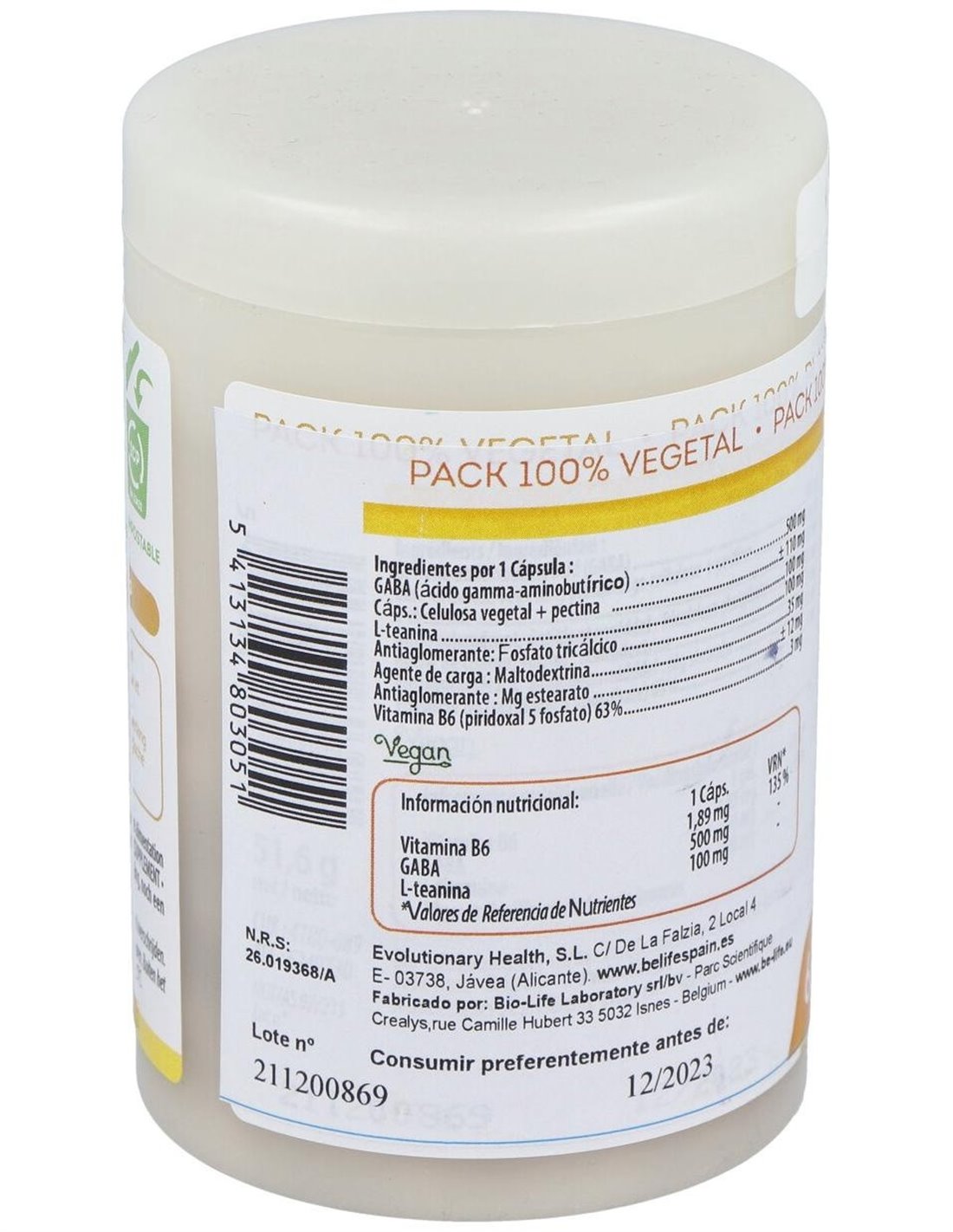 Compuesto por dos aminoácidos, un derivado de aminoácidos - GABA y L-teanina (del té), y vitamina B6, que contribuye al normal mantenimiento del sistema nervioso. Producto vegano.