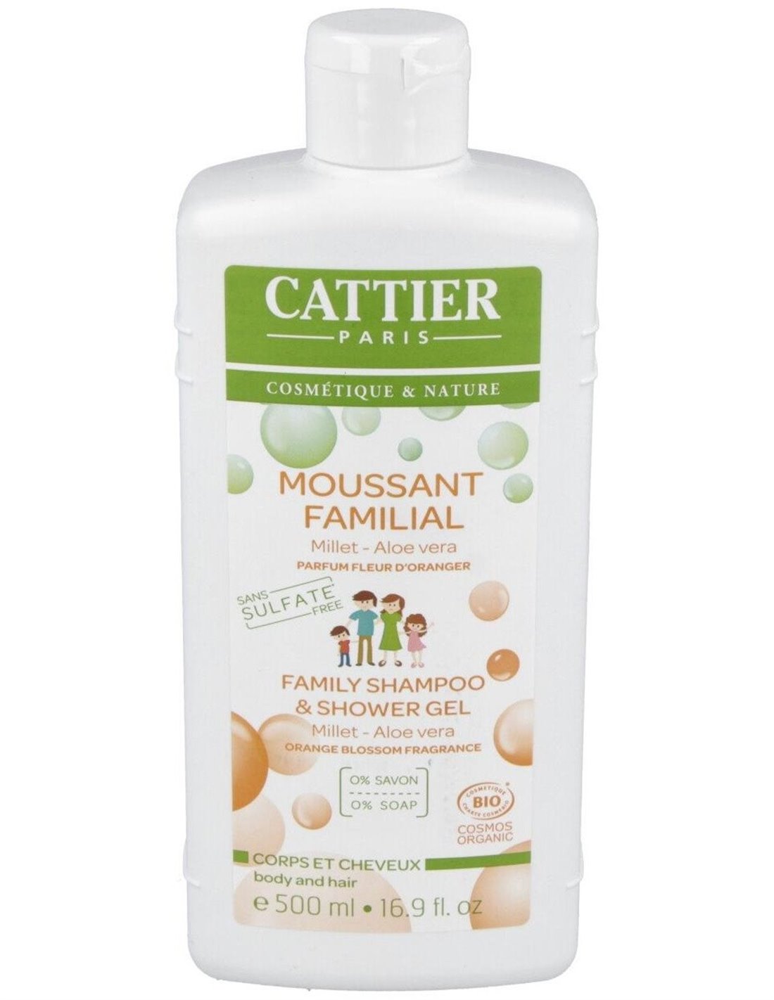 Formulado sin jabón ni sulfatos, este gel espumoso es perfecto para limpiar suavemente el cuerpo y el cabello de toda la familia. El aloe vera, con propiedades calmantes, hidratantes y protectoras aporta suavidad a la piel. El mijo ayuda a reparar el cabello aportando brillo y vitalidad. Su textura gel espumosa con un ligero olor a azahar, encantara más pequeños y grandes para su momento de ducha reconfortante. Certificado ECOCERT. Apto para veganos.