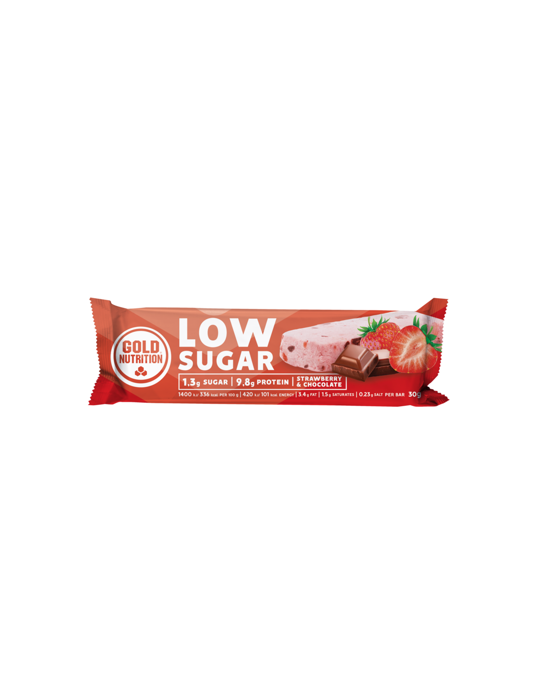Protein Bar Low Sugar Covered Fresa-Chocolate 15Ud de Gold Nutrition