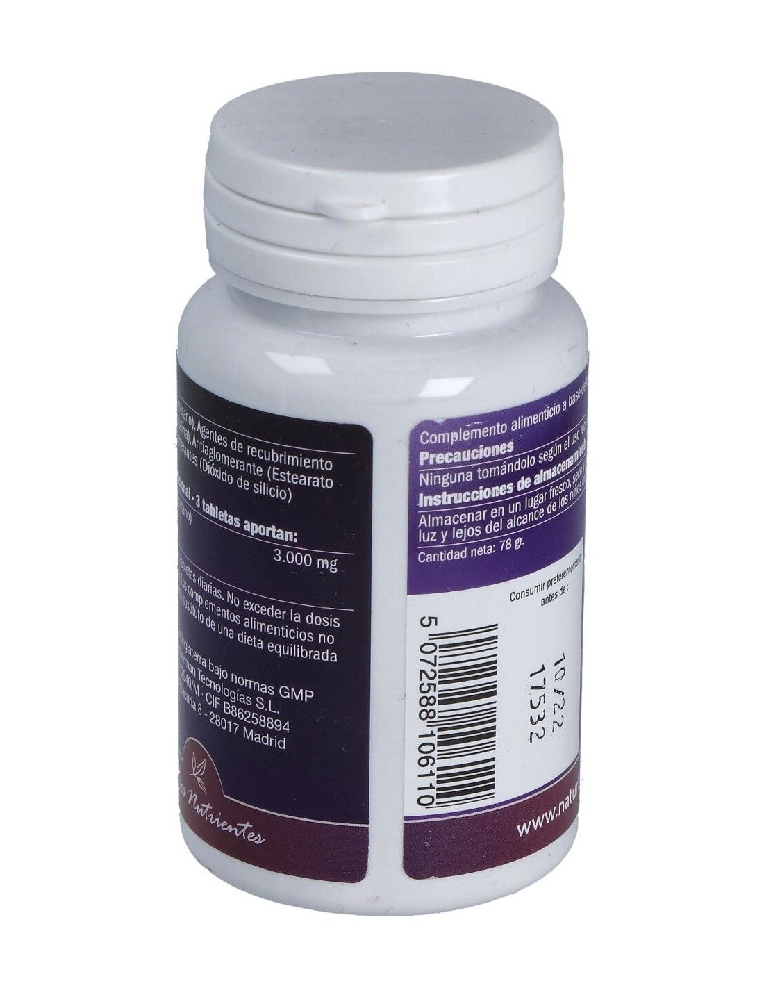Los complementos alimenticios no deben usarse como sustitutos de una dieta equilibrada ni de un modo de vida sano. No superar la dosis recomendada. Mantener fuera del alcance de los niños más pequeños.