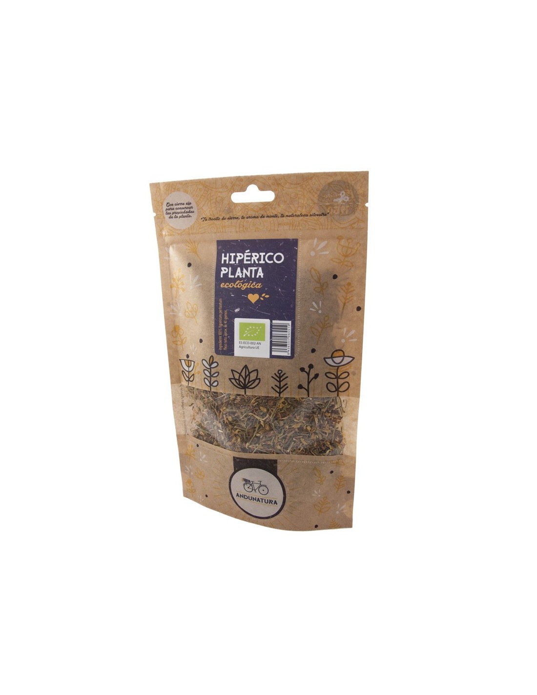 Saco biológico de Erva de São João (planta) 40 g Andunatura é um suplemento natural para interessados em plantas medicinais, que oferece uma fonte de Erva de São João orgânica em uma apresentação prática e dosada.
