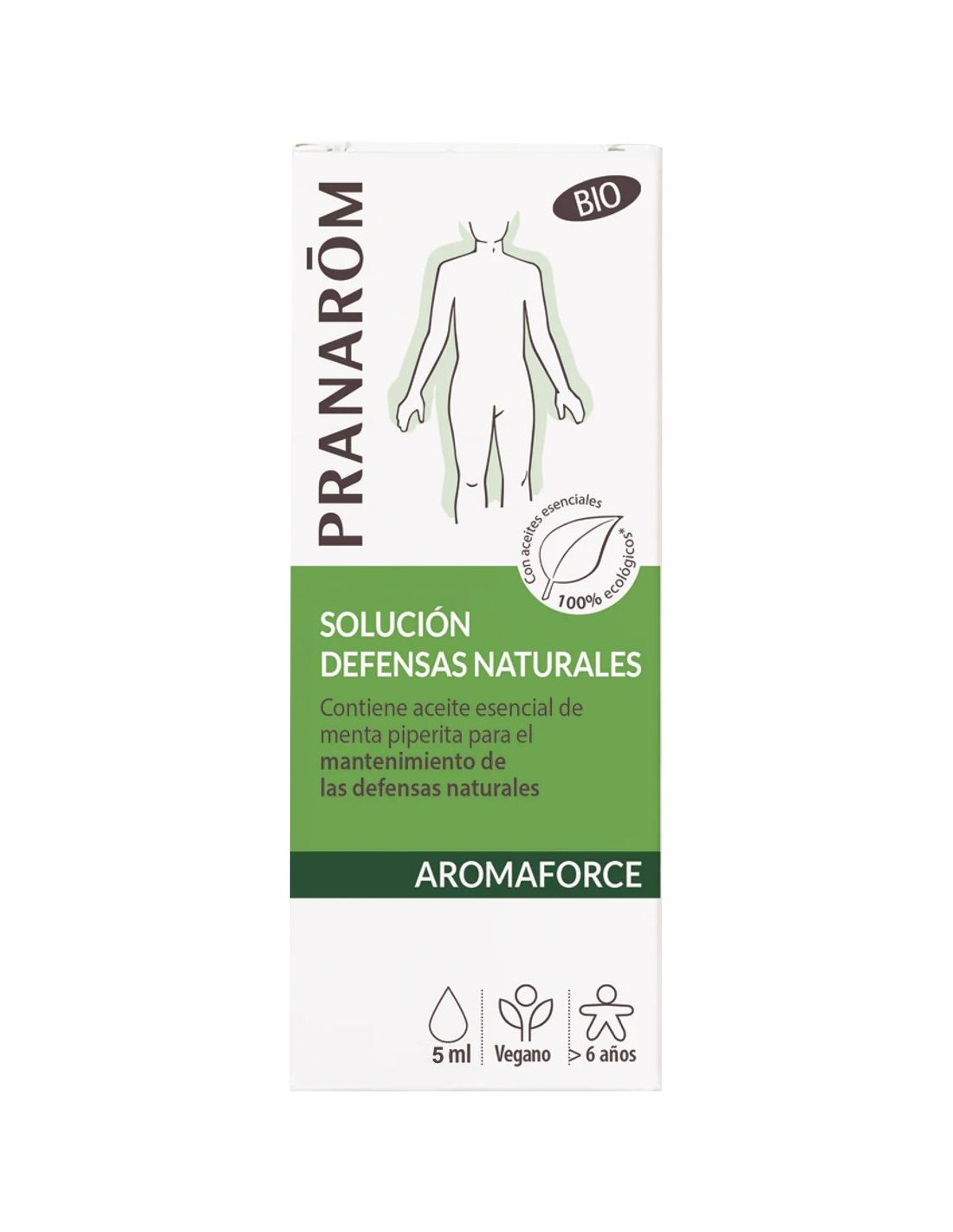 Organic alcohol denat.: Aceites esenciales : Citrus sinensis* (naranja dulce), Cinnamomum camphora* (palo de Ho), Melaleuca quinquinervia* (niaulí), Eucalyptus globulus* (eucalipto), Cinnamomum camphora* (ravintsara), Pelargonium graveolens* (geranio), Cananga odorata* (ylang-ylang), Eucalyptus citriodora* (eucalipto azul), Eugenia caryophyllus* (clavo de especias), Cedrelopsis grevei* (katrafay), Zingiber officinalis* (jengibre).