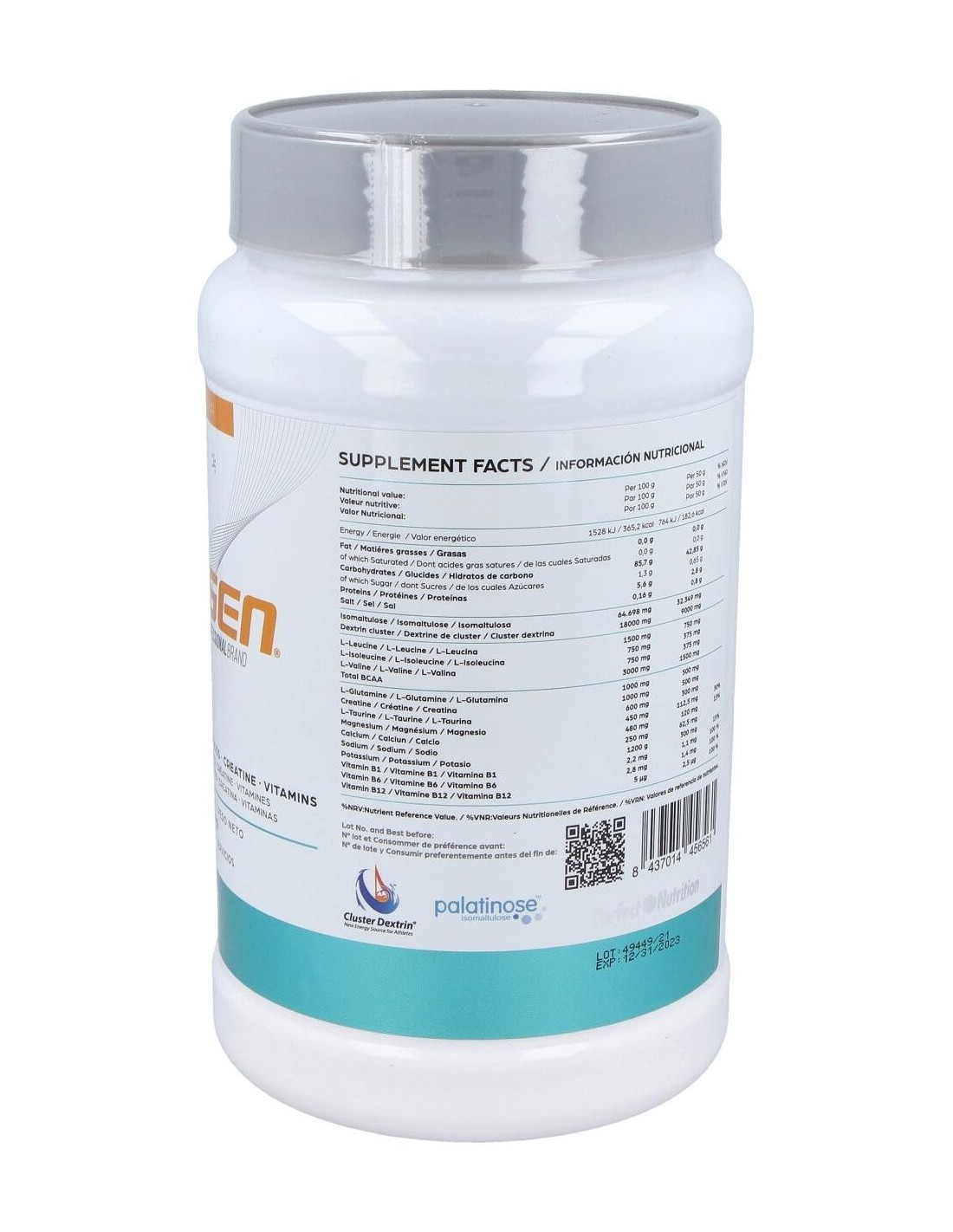 Ciclodextrina (Cluster Dextrin®), isomaltulosa (Palatinose®), BCAA, glutamina, Creatina (Creapure®), taurina, Agua de Mar atomizada, Magnesio, Potasio, Calcio, Sodio, vitaminas B1, B6, B12, excipientes.
