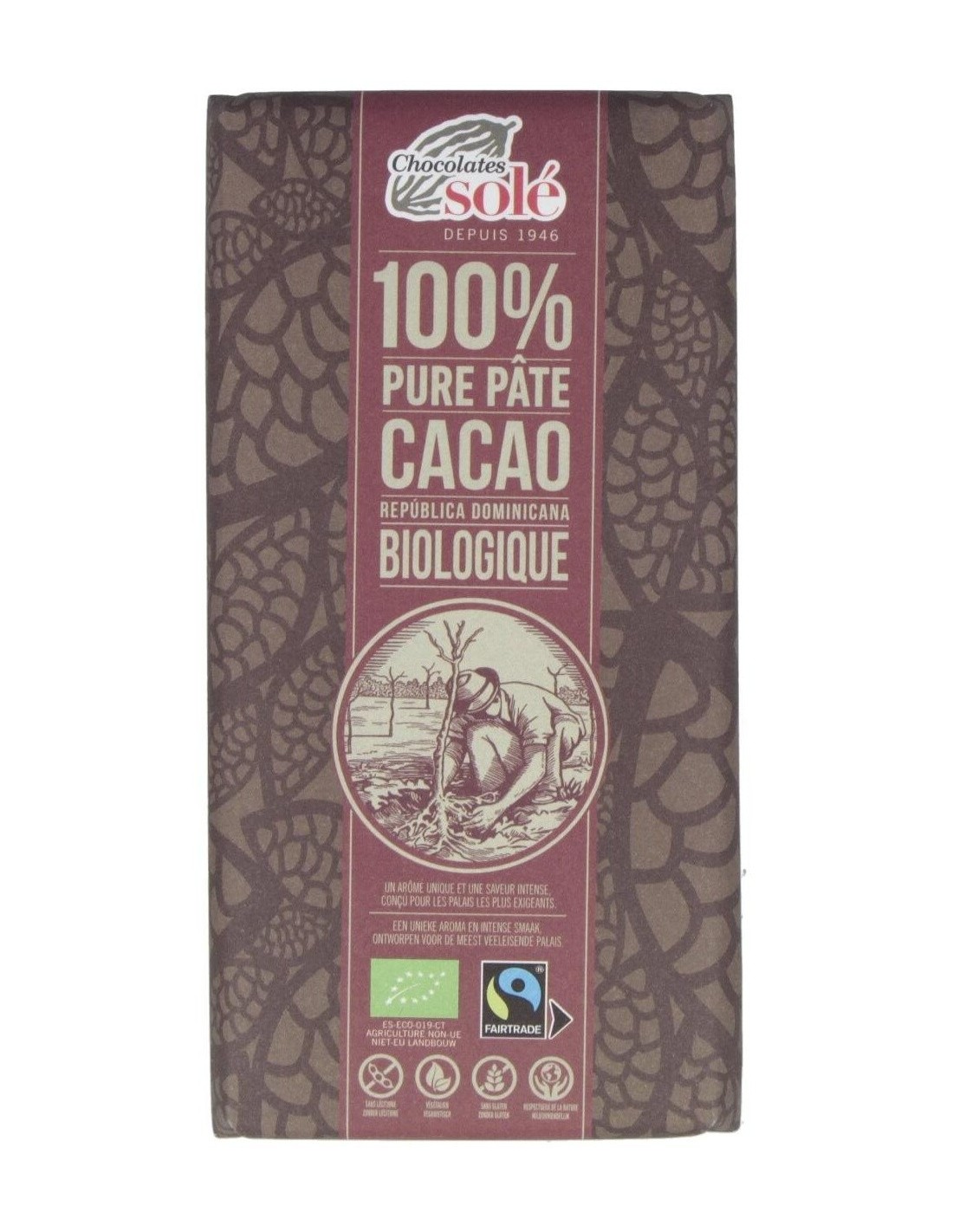 De comercio justo. 100% natural. Sin gluten, sin lecitina. Vegano.