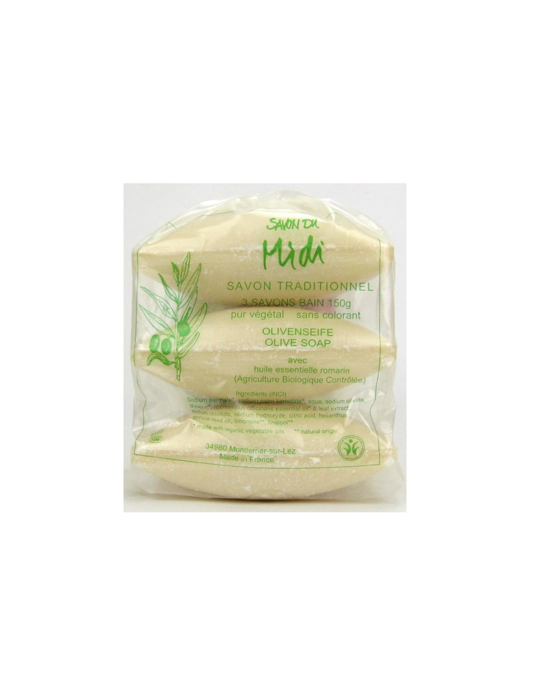 Jabon En Pastilla De Oliva-Romero 3Udx150Gr. Bio de Savon Du Midi