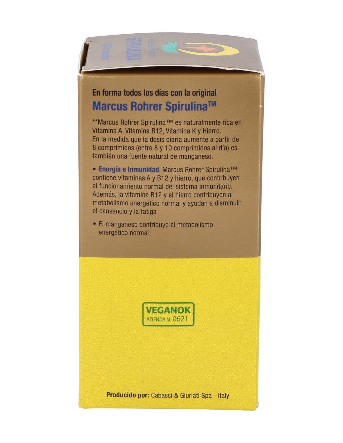 La espirulina proporciona una fuente completa de aminoácidos y contribuye a mantener niveles normales de energía. Producto apto para vegetarianos.