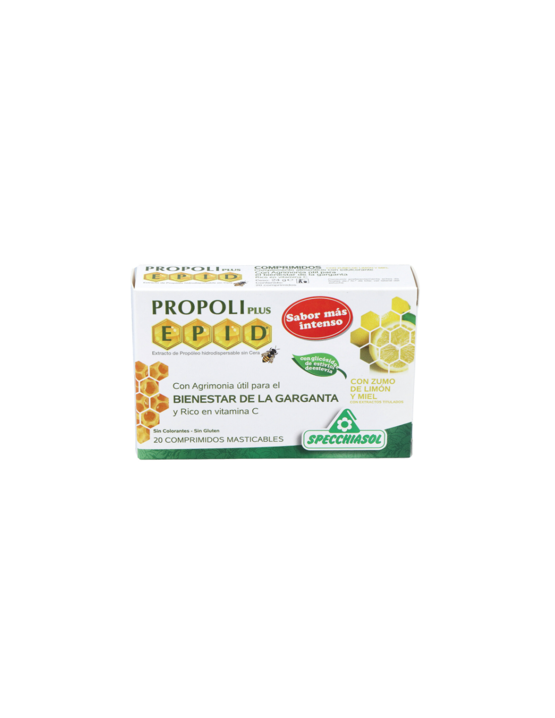 Comprimidos para disolver en la boca a base de Propóleo E.P.I.D.®, extracto seco de Rosa canina y Agrimonia, útiles para el alivio y bienestar de la garganta.
