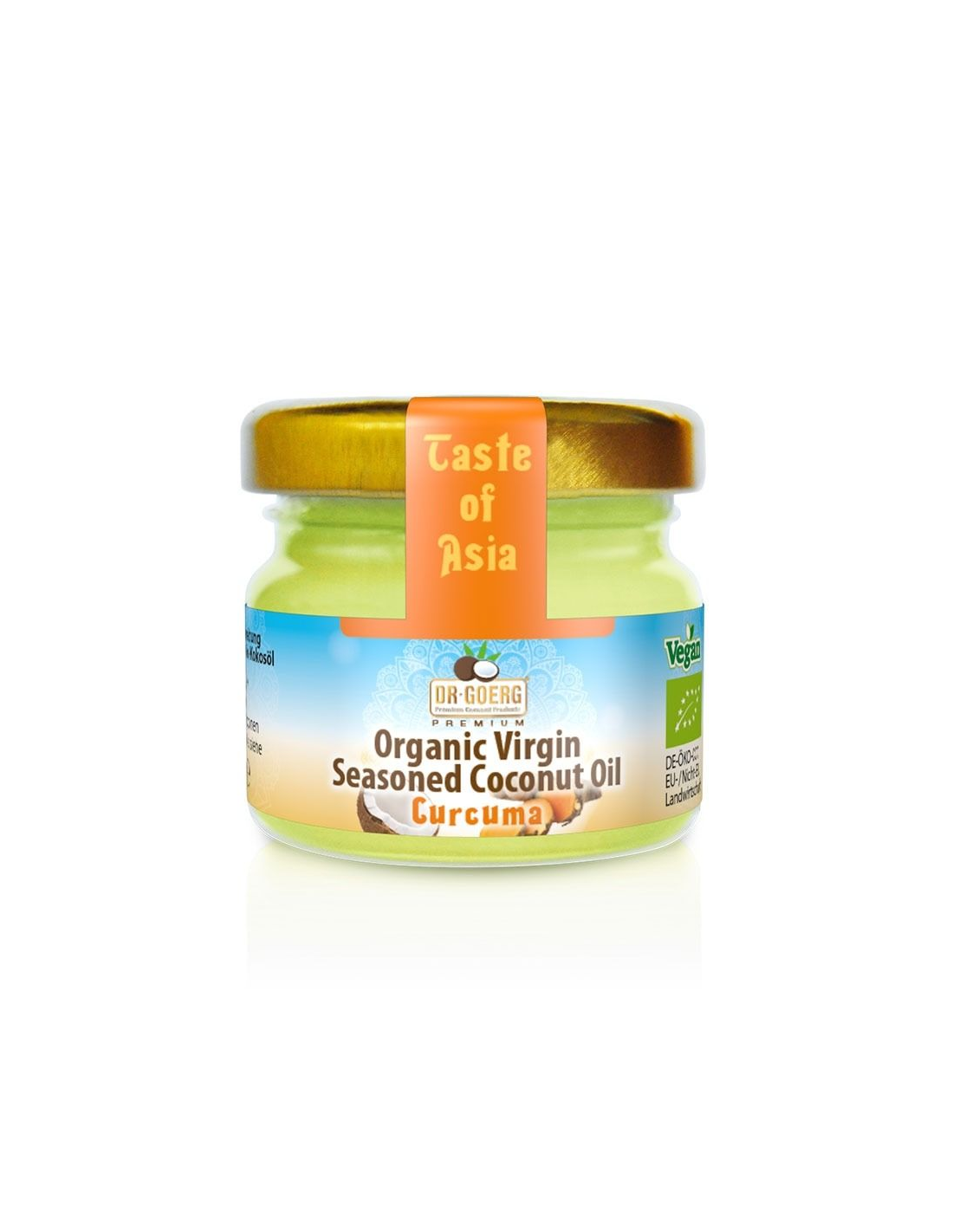Aceite de coco bio con un sabor oriental picante y extracto de cúrcuma bio