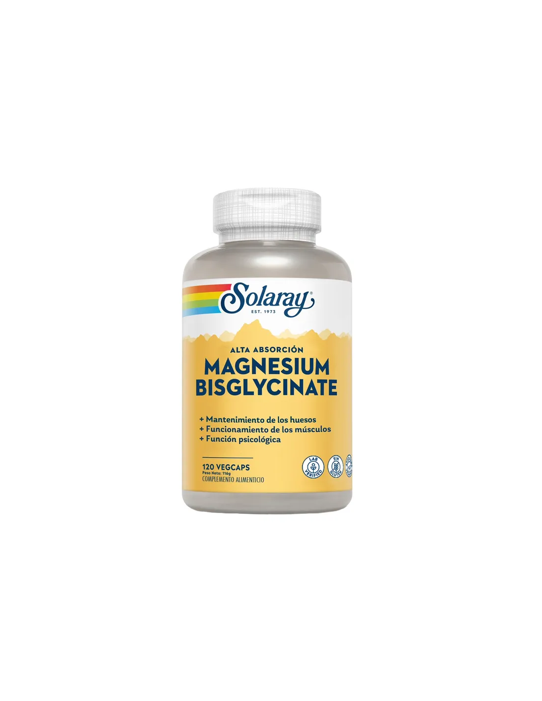 Glicinato de magnésio para pessoas com estilos de vida ativos, que procuram manter ossos e músculos saudáveis. Bisglicinato de Magnésio 120 VCaps Suplemento Alimentar Informações Nutricionais Porções 3 Cápsulas Porções por embalagem 40 Porção Diária 3 Cápsulas Quantidade por PORÇÃO DIA Magnésio 281,25 mg (75% NRV*) Glicinato de Magnésio - BioPerine® (Piper Nigrum)(Frutas) 3,75 mg Extrato de Pimenta Preta - *NRV: Valor de Referência do Nutriente Ingredientes: Cápsula de Celulose Vegetal, Magnésio (Glicinato de Magnésio), BioPerine® (Piper Nigrum)(Fruta) (Extrato de Pimenta Preta), Antiaglomerante (Estearato de Magnésio), Celulose, Dióxido de Silício Como usar: Tome três cápsulas vegetais por dia com alimentos ou um copo de água. Conservação: Conservar em local fresco e seco. Advertências: Os suplementos alimentares não devem ser utilizados como substitutos de uma alimentação variada e equilibrada ou de um estilo de vida saudável. Mantenha fora do alcance de crianças pequenas. Não exceda a dose diária expressamente recomendada. Este produto não se destina a diagnosticar, tratar, curar ou prevenir qualquer doença. Sem Glúten Adequado para Vegans Quantidade líquida: 116 g