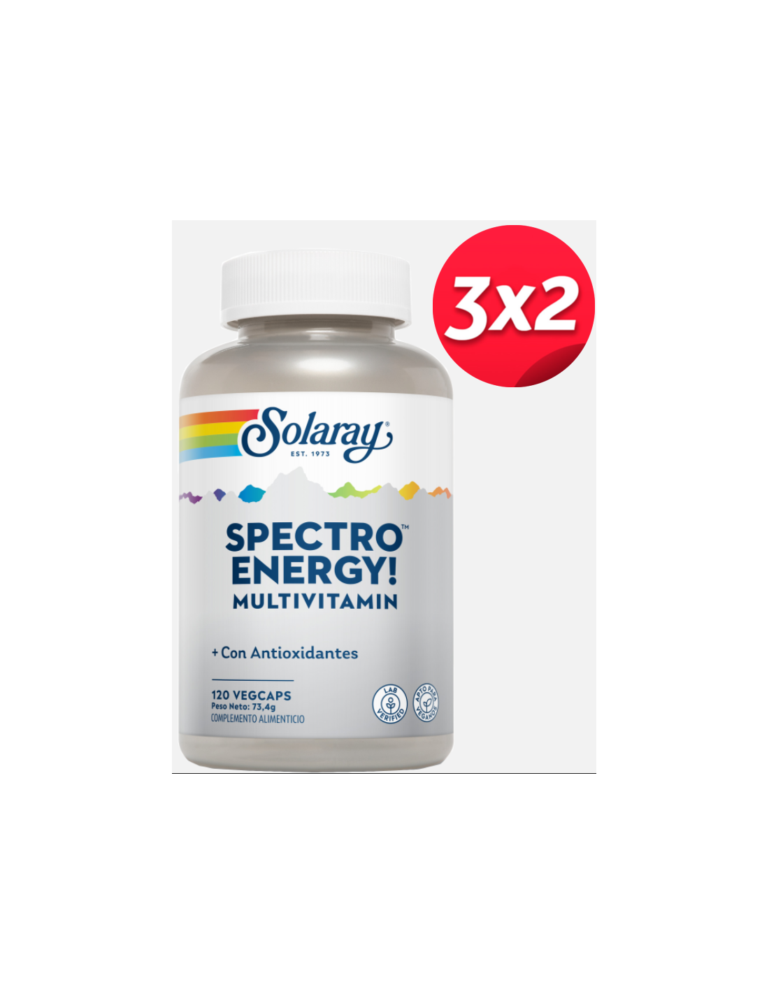 Características e benefícios do pack 3x2 Spectro Energy 120Cap. Da Solaray
