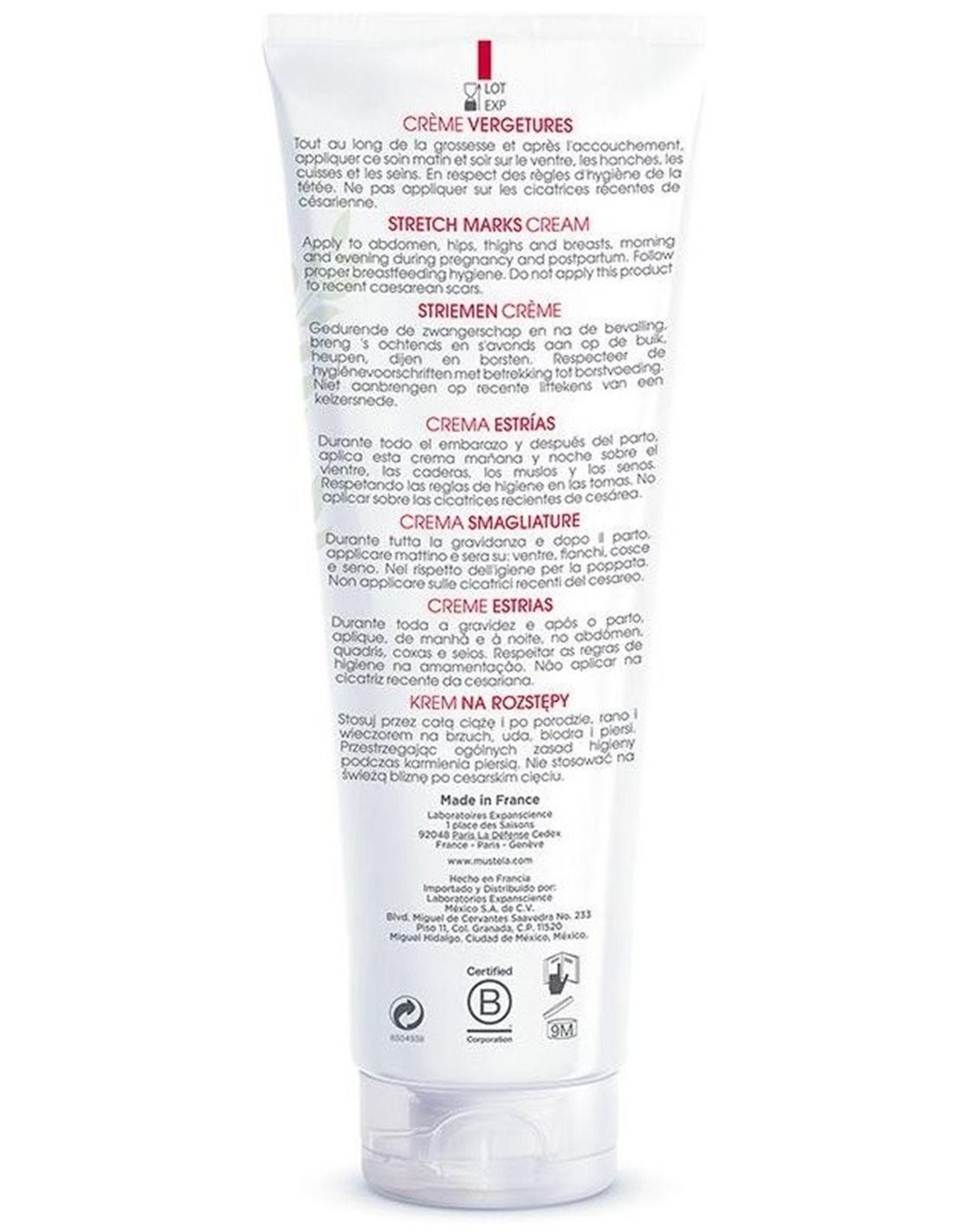 MUSTELAHidrata y alivia las sensaciones de tirantez. Su ingrediente clave se extrae del aceite de maracuyá y se ha seleccionado específicamente para mejorar la elasticidad y preservar la flexibilidad de la piel de las mujeres embarazadas. Especialmente formulada para prevenir la aparición de estrías durante todo el embarazo.