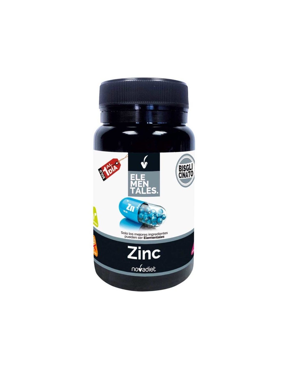 El zinc es un mineral que ayuda al funcionamiento normal del sistema inmunitario y a la protección de las células frente al daño oxidativo. Además, es un nutriente clave en la salud sexual masculina, ya que ayuda al mantenimiento de niveles normales de testosterona.Contribuye al metabolismo normal de las grasas, las proteínas y los hidratos de carbono. Y también ayuda a mantener la salud de la piel, del cabello y de las uñas. Además, el Bisglicinato de zinc es la sal de zinc que mejor se absorbe.Composición activa por cápsula:125 mg de bisglicinato de zinc (25 mg de zinc).Ingredientes:Agente de carga (celulosa microcristalina), Bisglicinato de zinc, Antiaglomerantes (fosfato cálcico dibásico, estearato de magnesio). Cubierta: Agua, Hidroxipropilmetilcelulosa.Modo de empleo:Tomar 1 cápsula al día con ayuda de agua.Presentación:Envase de 60 cápsulas vegetales.Recomendaciones y advertencias:Si está embarazada o en periodo de lactancia, consulte con un profesional de la salud. No tome este complemento alimenticio si es alérgico o intolerante a alguno de sus ingredientes. Si está tomando antibióticos, separe la toma de Zinc mínimo 2 horas.