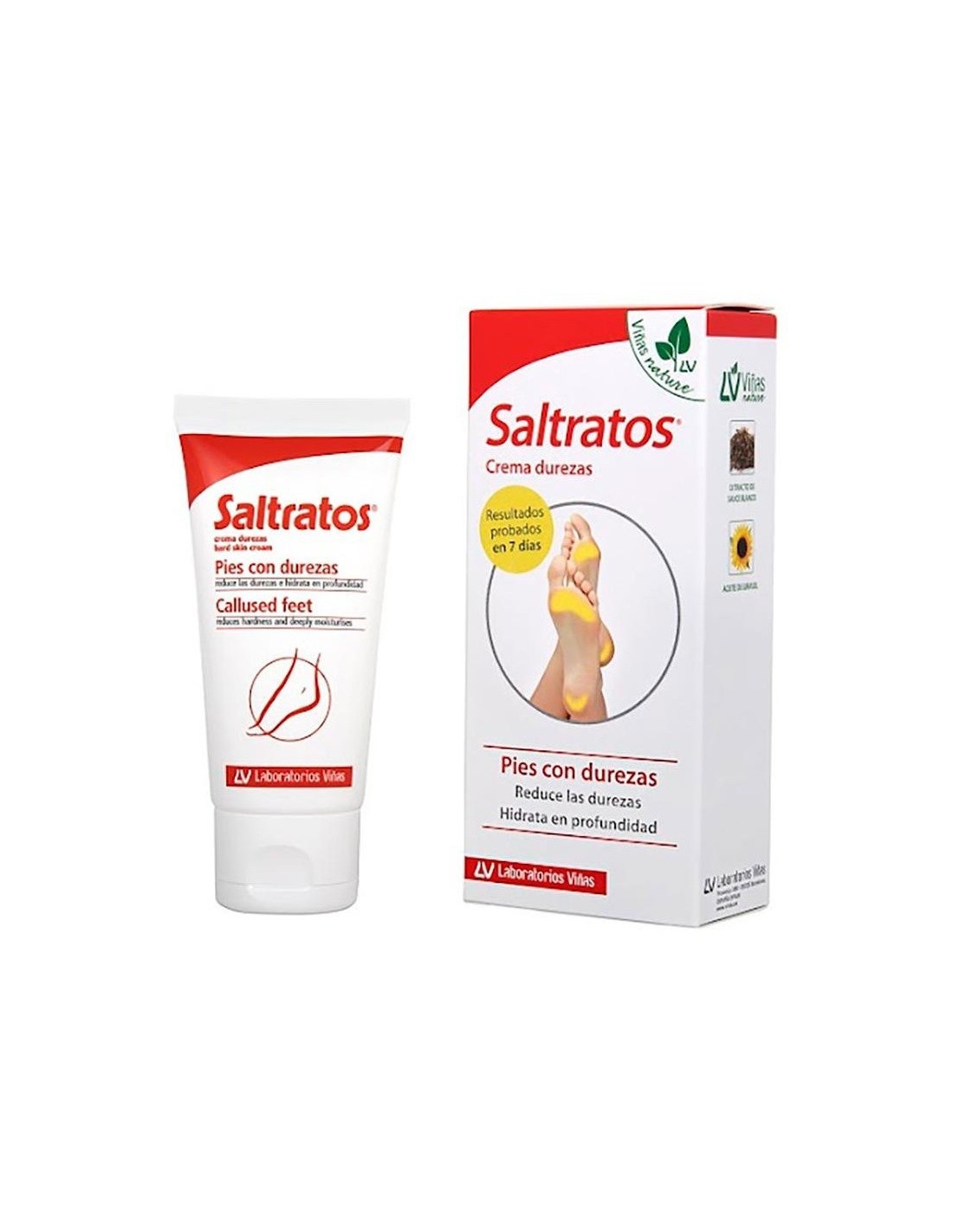 SALTRATOSSu uso regular elimina las durezas y previene su reaparición gracias a la urea (20 %) y al ácido glicólico (5 %), ingredientes de probada acción queratolítica y renovadora celular. Contiene micro-esferas de nylon que contribuyen a reducir los roces con el calzado y por lo tanto la reaparición de las durezas. El extracto de sauce blanco aporta una acción exfoliante complementaria. Resultados efectivos en 7 días. Testado dermatológicamente.