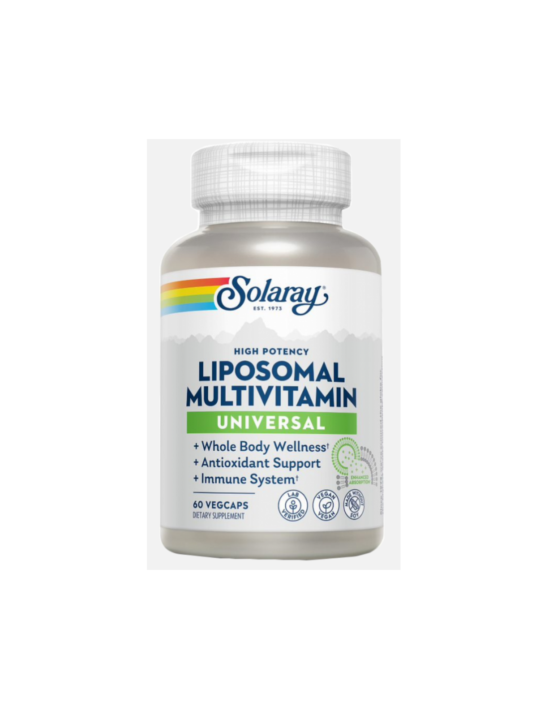 Universal Liposomal Multivit.- 60 Vegcaps de SOLARAY es un suplemento multivitamínico diseñado para apoyar tu salud diaria de manera efectiva. Gracias a su fórmula liposomal, mejora la absorción de vitaminas y minerales esenciales, favoreciendo un mejor aprovechamiento por el organismo. Cada cápsula vegetal aporta nutrientes clave para fortalecer el sistema inmunológico, aumentar la energía y mantener el bienestar general. Ideal para quienes buscan una nutrición completa y de alta calidad en una presentación fácil de consumir. Confía en SOLARAY para cuidar tu salud con productos naturales y confiables.
