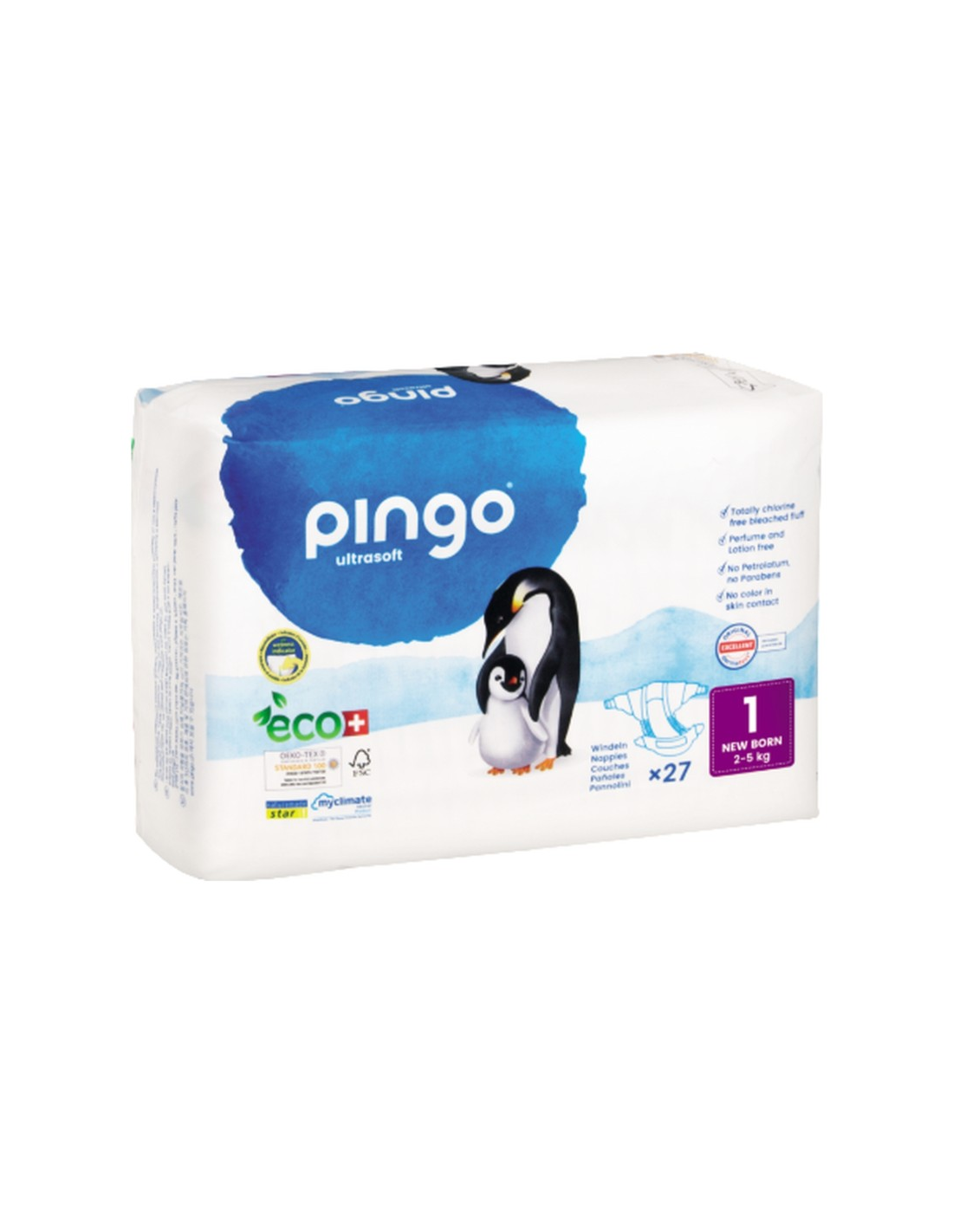 Pañales T1 Recien Nacido 2-5 Kg Bio, 27 Uds de Pingo