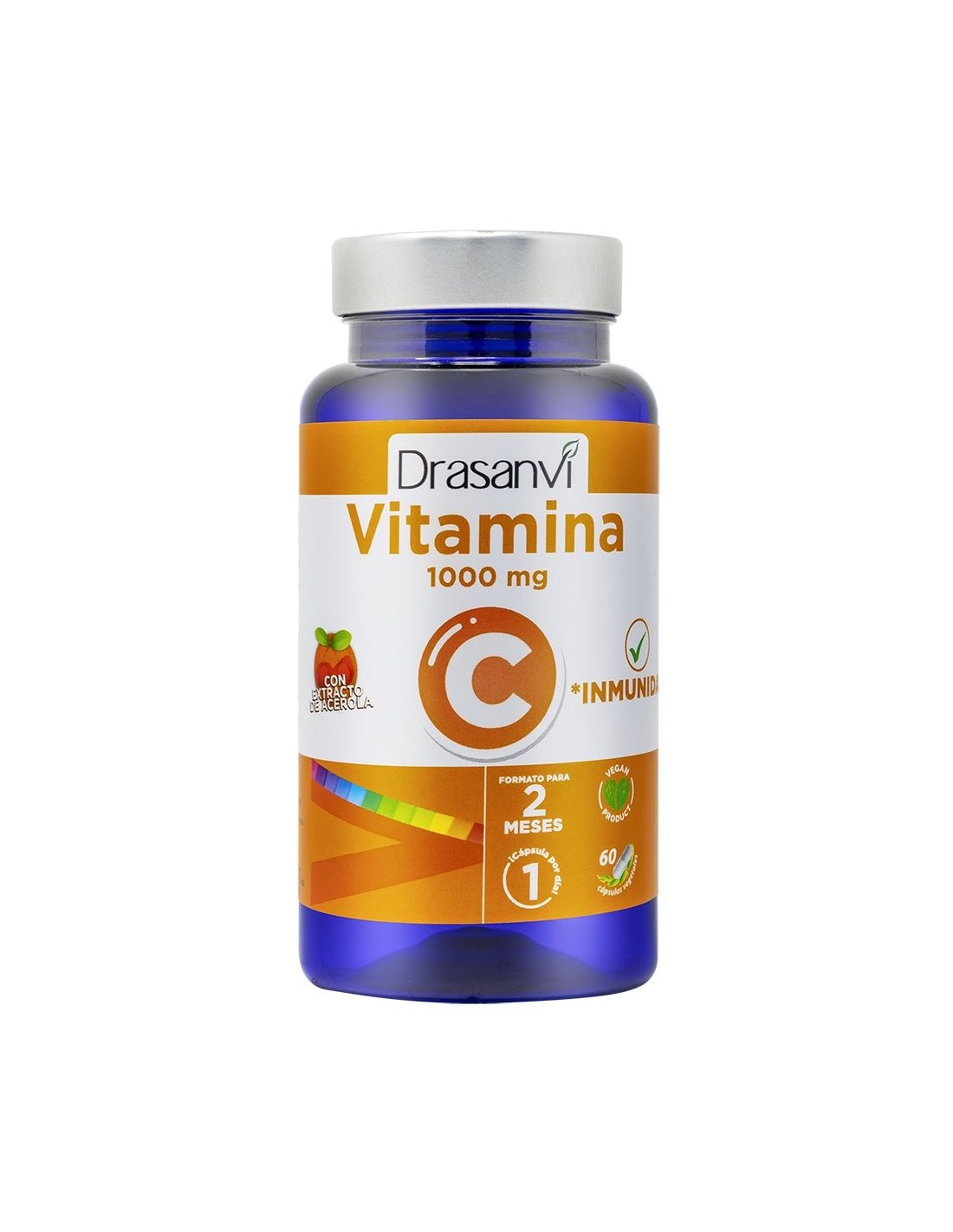 A vitamina C é uma vitamina solúvel em água. É um nutriente essencial, por isso temos que incorporá-lo na dieta alimentar. Drasanvi incorpora Vitamina C em sua linha de produtos, com 1000 mg de ácido ascórbico e contribuição de Acerola, que incorpora Vitamina C de origem vegetal. Composição ativa por cápsula: