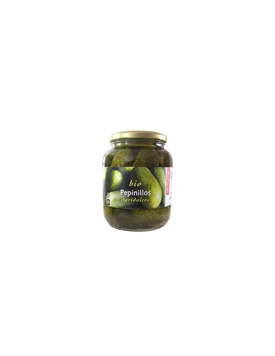 Pepinillos*, aqua, vinagre*, sirope de agave*, semillas de mostaza (amarillo)*, sal marina.