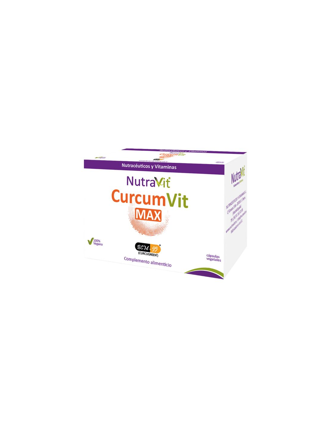 CurcumVit Max es un complemento Alimenticio a base de Cúrcuma BCM-95®, Extracto de Granada (40% ácido elágico, 40% punicalaginas), L-Lisina y L-Metionina. La Curcumina presenta efectos antiiinflamatorios, analgésicos, antioxidantes, antitumorales y antidepresivos. La Granada presenta un potente efecto antioxidante.
