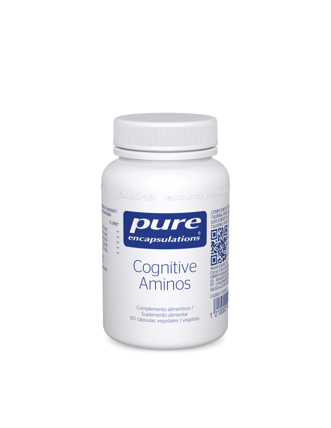 Cognitive Aminos 60cap de Pure Encapsulations es un suplemento nutricional para adultos que apoya la función cerebral mediante aminoácidos esenciales formulados para contribuir al bienestar cognitivo.