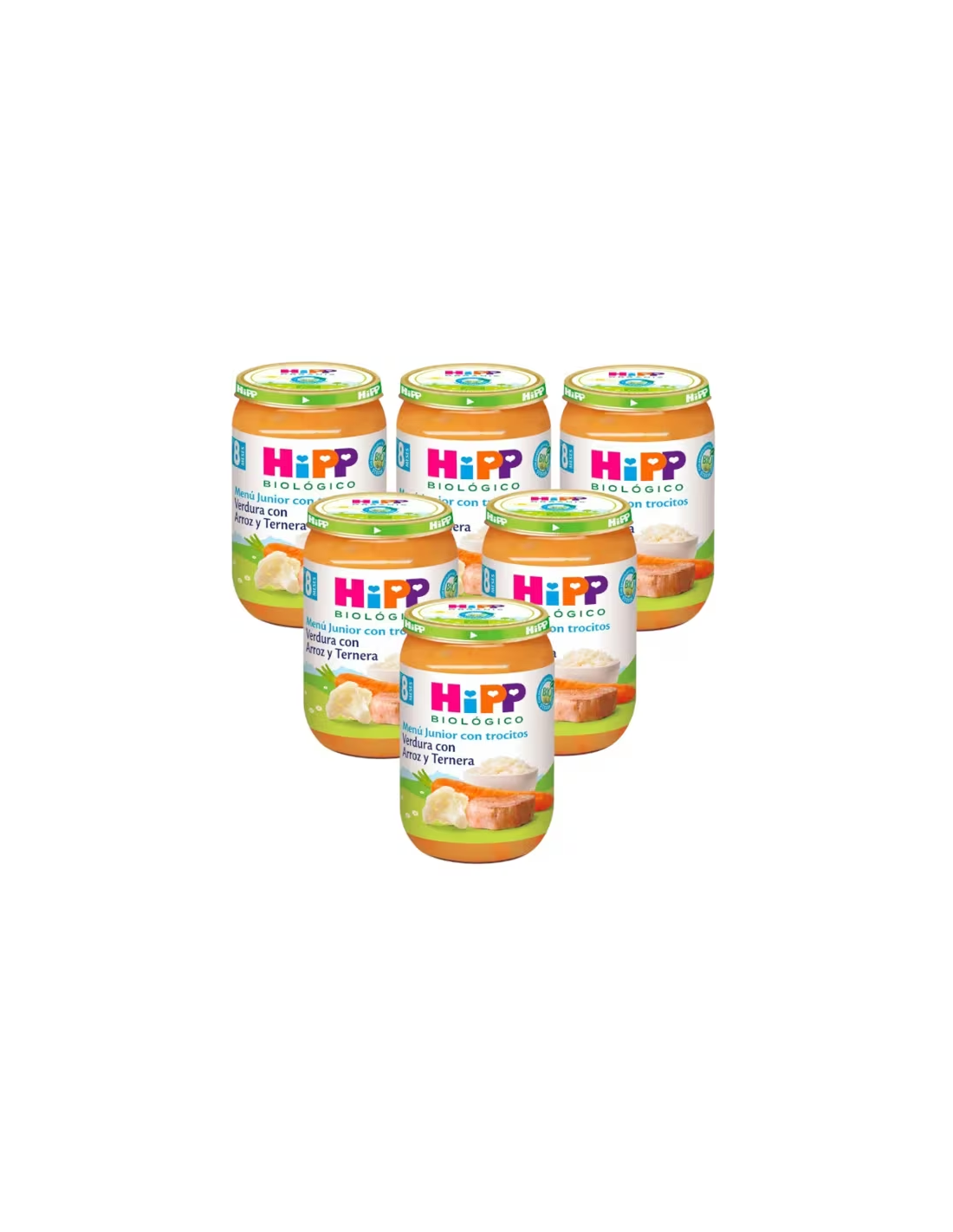HIPPCaracterísticas e Benefícios do Pacote 6 Unidades Pote de Legumes com Arroz e Carne Orgânica 220 g da Hipp