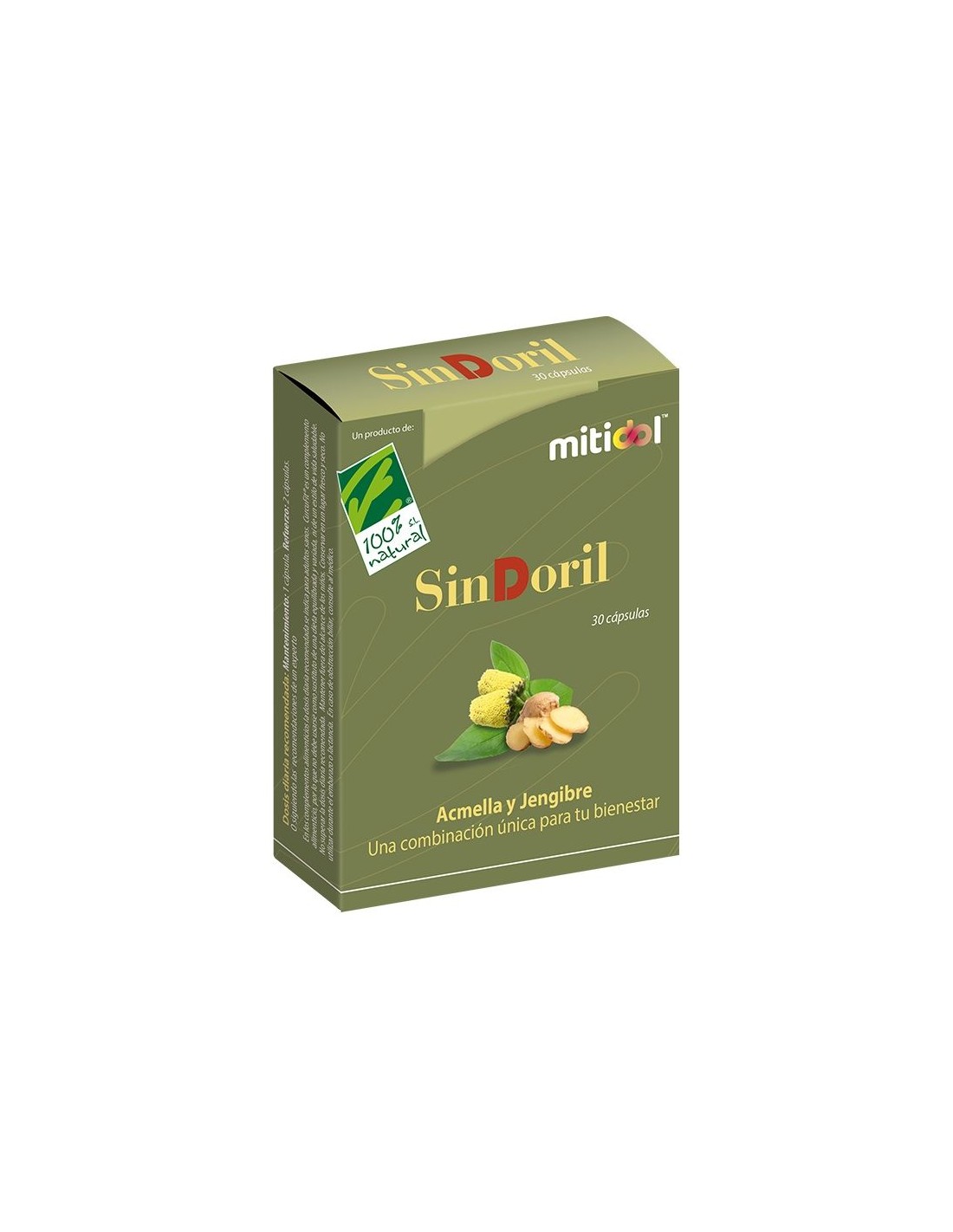 SinDoril é um suplemento alimentar à base de Mitidol®, uma combinação única de dois extratos padronizados amplamente estudados de plantas tradicionalmente utilizadas: Acmella (Acmella oleracea (L.) R.K. Jansen) e Gengibre (Zingiber officinale Roscoe). O gengibre ajuda a controlar a resposta inflamatória. Os ingredientes que compõem a formulação de SinDoril (MitidolR) têm sido amplamente estudados, porém, graças aos estudos clínicos realizados com a combinação de ambos os ingredientes, pudemos constatar como a atividade das duas plantas foi aumentada em relação à atividade independente de cada planta. Composição ativa por cápsula: