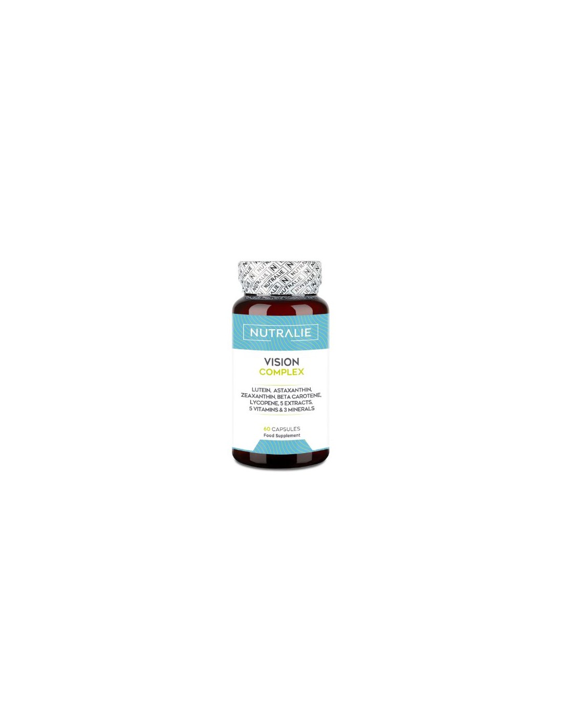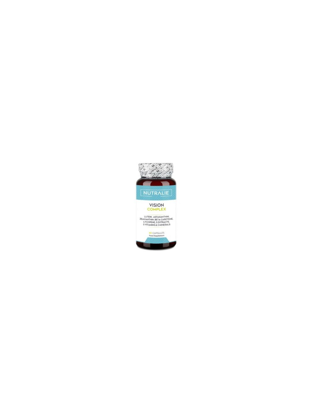 Nutralie Vision Complex foi desenvolvido com o objetivo de contribuir para a melhoria da saúde ocular contra os danos oxidativos, atuar como filtro contra a luz azul, melhorar a acuidade visual em condições de pouca luz e contribuir para aliviar o conforto e a irritação ocular. Os princípios ativos presentes na sua fórmula Complex contribuem para prevenir problemas de ressecamento e irritação ocular, aliviando o conforto. Esta fórmula do Complexo Best In One contém 18 ingredientes ativos, como Luteína, Astaxantina, Zeaxantina, Betacaroteno, Aristotelia Chilensis, Mirtilo, Uva, Licopeno, Casca de Pinheiro, Espinheiro Marítimo, Vitamina A, C, E, B1 e B2, Minerais (Zinco, Cobre, Selênio). Composição ativa por 2 cápsulas: