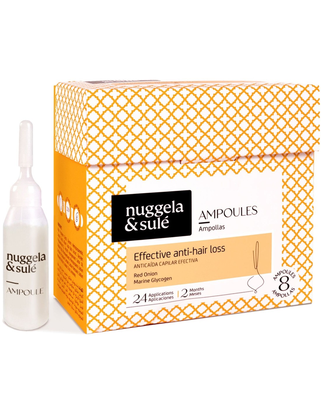 Nuggela & Sulé possui a primeira solução para fortalecimento capilar à base de glicogênio marinho e extrato de cebola roxa em formato de ampola altamente eficaz e de fácil absorção. Uma alta concentração de princípios ativos combinando técnicas tradicionais com a última geração. O Glicoenergizador Capilar (glicogênio marinho) é um princípio ativo em forma de glicose que após anos de pesquisas conseguimos extrair da membrana de abertura e fechamento da concha dos moluscos, um dos músculos mais fortes da natureza. E juntamente com as propriedades capilares do extrato de cebola roxa, fornecem uma dose de pura energia para que o folículo capilar beneficie de um fortalecimento extra, ajudando eficazmente a travar a queda de cabelo. Além disso, sua aplicação estimula o crescimento do cabelo, conferindo-lhe mais volume e brilho.
