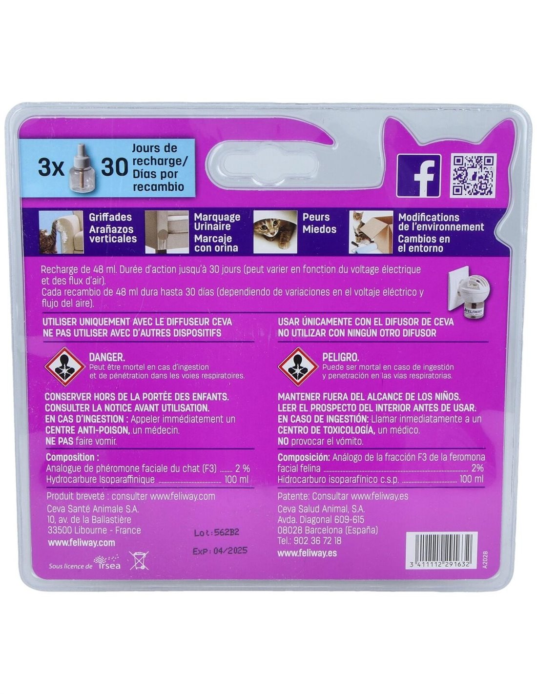 CEVA vetCaracterísticas e benefícios do pacote de recarga de 3 meses Feliway Classic da Ceva Vet
