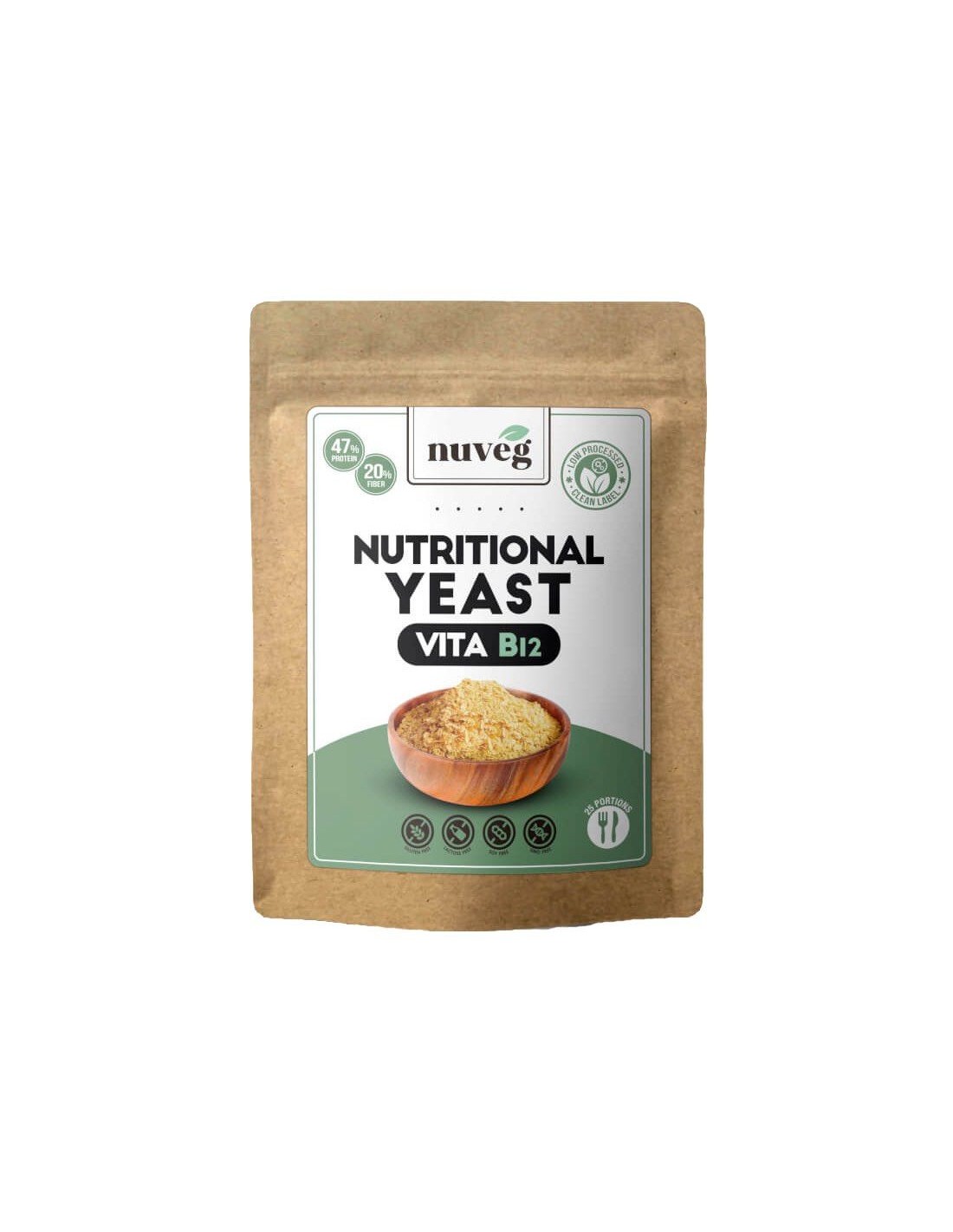 La Levadura Nutricional High Vita B en Copos de Nuveg transforma tus comidas con un toque distintivo de sabor, textura y vibrante color. No solo realzará tus platos, sino que también enriquecerá tu salud con un potente impulso de vitaminas, minerales y proteínas.Es inactiva y no provoca el desarrollo de levaduras en el tracto intestinal. Con 51% de proteínas biodisponibles es además extraordinariamente rica en todas las vitaminas del grupo B. 10g superan los valores diarios de referencia de las vitaminas B1, B2, B3, B5, B6, B9 y B12, así como 120% del valor referencia nutricional del Zinc. Delicioso sabor ligeramente salado para espolvorear en pasta, sopas, ensaladas, etc.Dale una oportunidad a nuestra Levadura Nutricional High Vita B12 y descubre por qué se convertirá en tu aliado nutricional favorito. ¡Una vez que la pruebes, te cautivará!Propiedades: