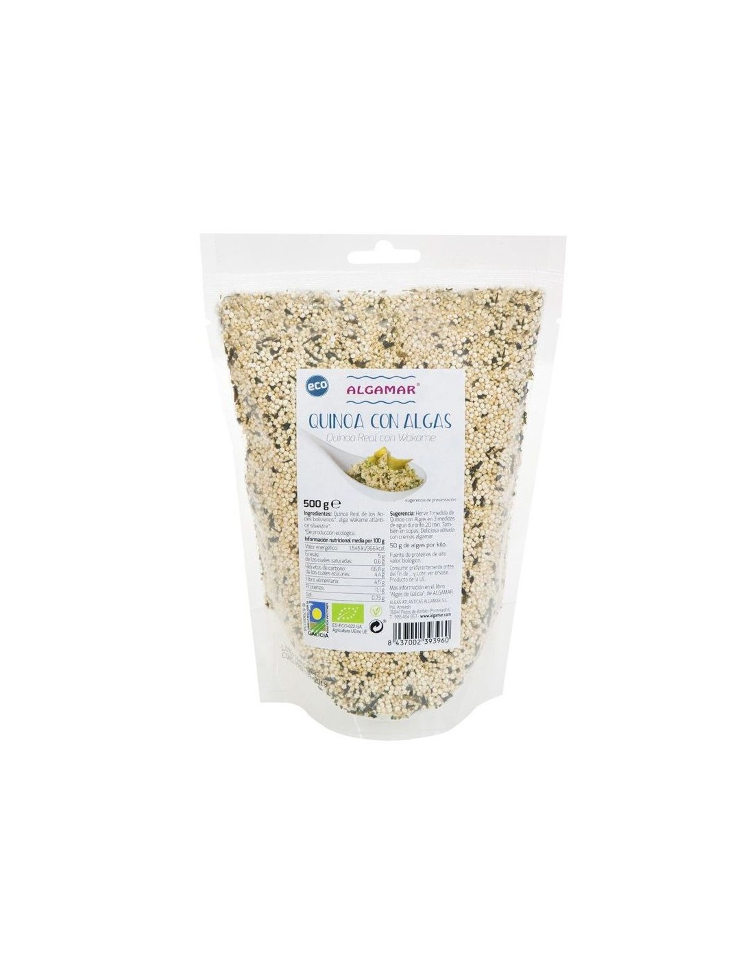 - Fuente natural de energía: La combinación de quinoa y algas proporciona un aporte equilibrado de carbohidratos, proteínas y minerales, ayudando a mantener la energía durante todo el día.